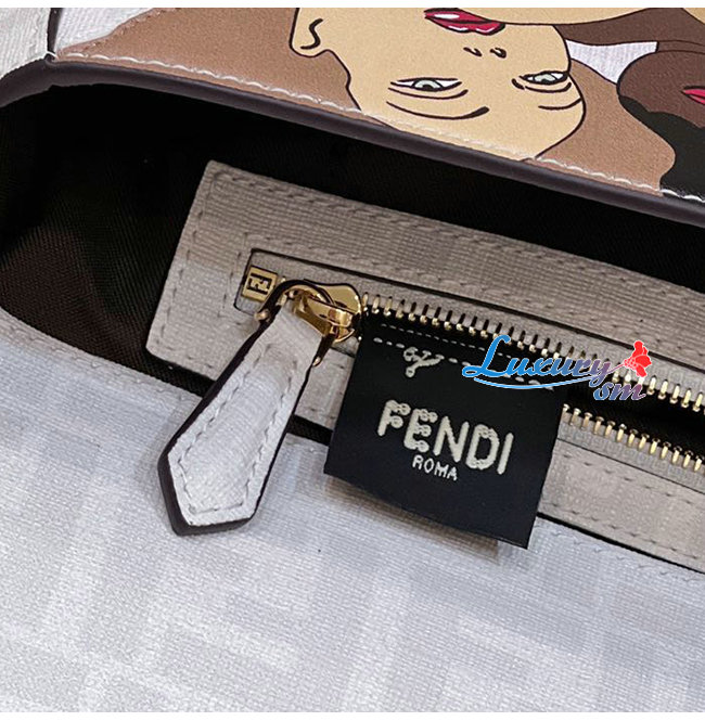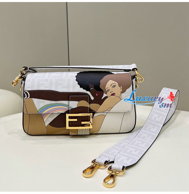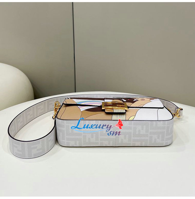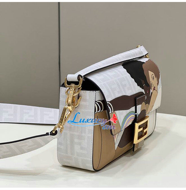 [스페셜오더]FENDI-8BR600 펜디 화이트 FF 모티프 양가죽 미디엄 바게트백