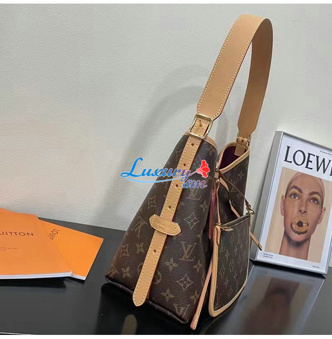 연 가죽 트리밍을 더한 모노그램 캔버스 소재.