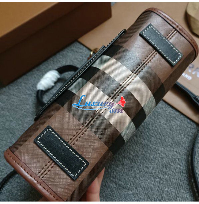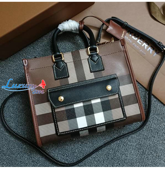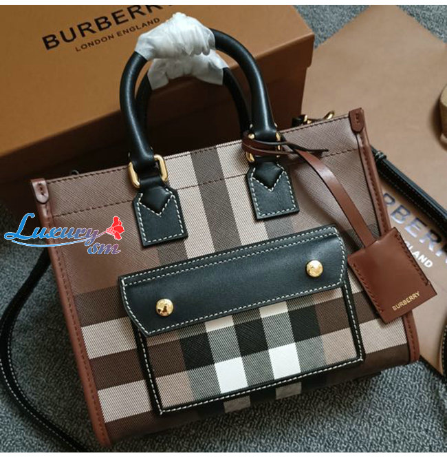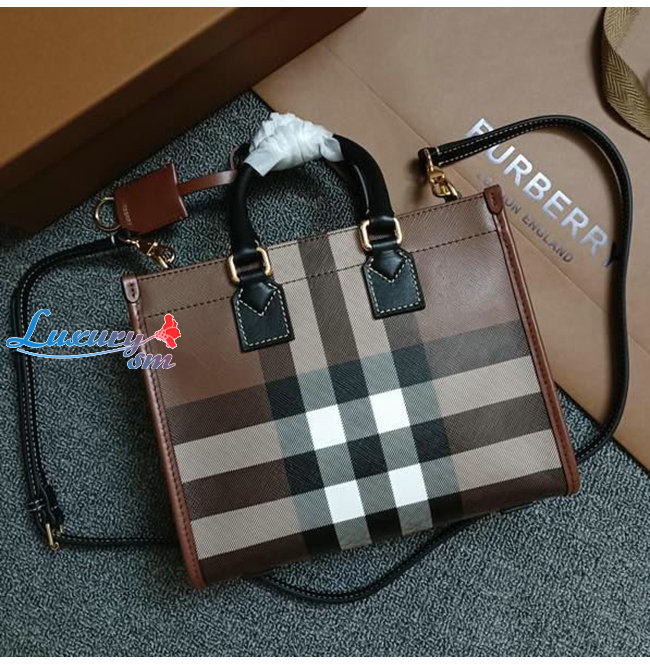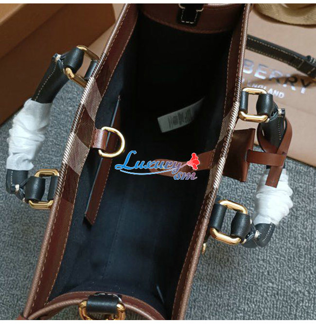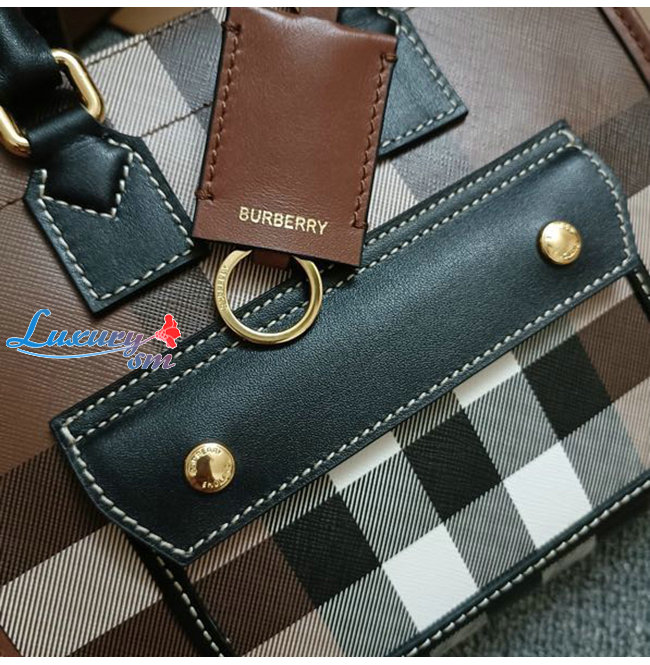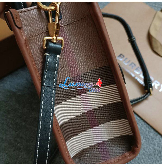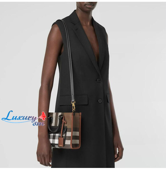 [스페셜오더]BURBERRY-80543091 버버리 브라운 미니 체크 레더 프레야 토트