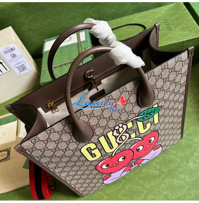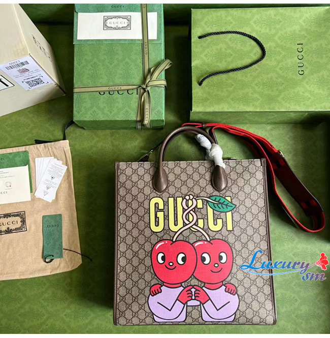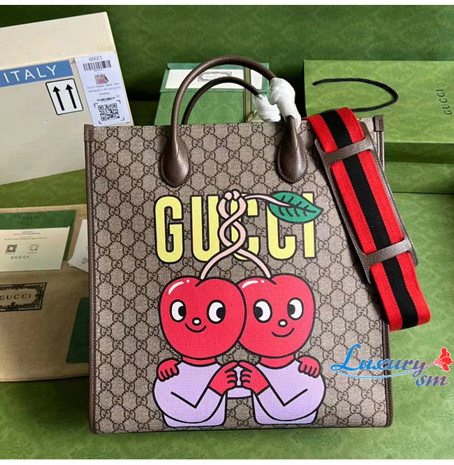 [스페셜오더]GUCCI-703264 8839 구찌 베이지 체리 프린트 미디엄 토트백
