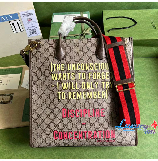 아 GG 수프림 미디엄 토트백을 선보임.