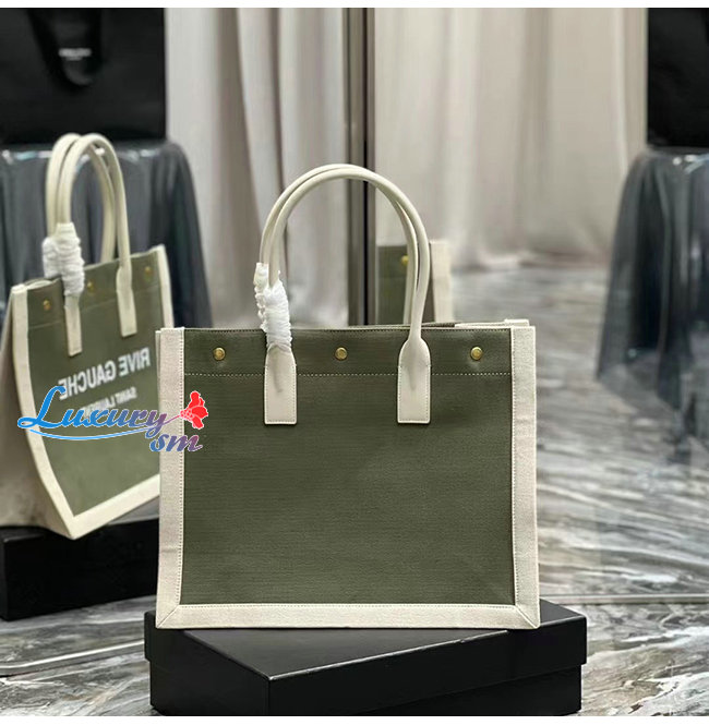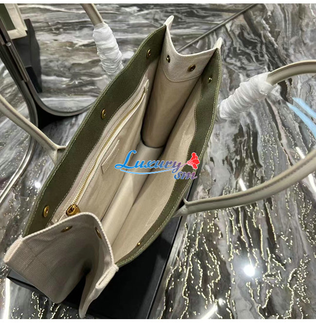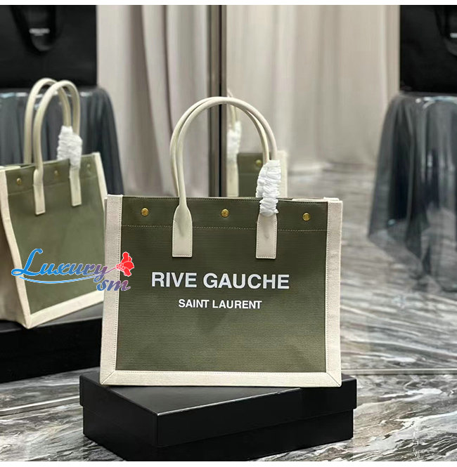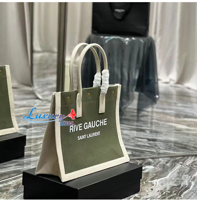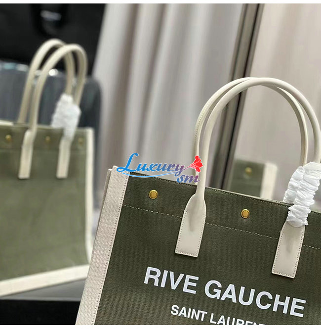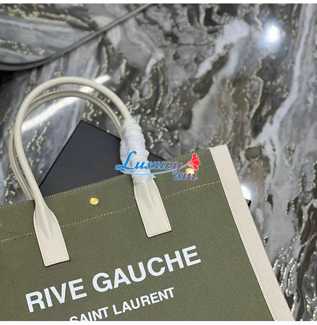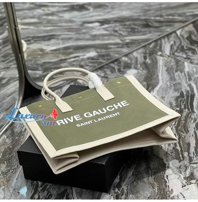 [스페셜오더]SAINT LAURENT-617481 생 로랑 카키 린넨 RIVE GAUCHE 스몰 토트백