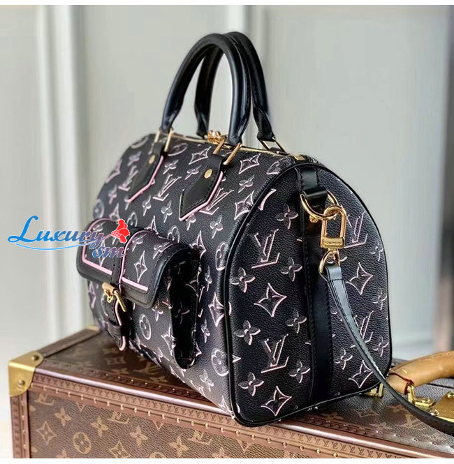 [스페셜오더]LOUIS VUITTON-M58524 루이비통 블랙 모노그램 앙프렝뜨 레오파드 프린트 스피디 반둘리에 25