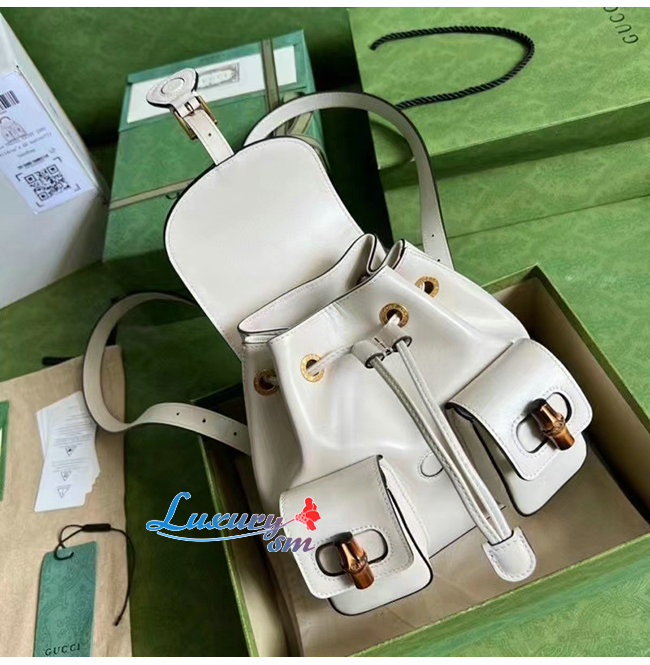 [스페셜오더]GUCCI-702101 9022 구찌 화이트 가죽 뱀부 백팩