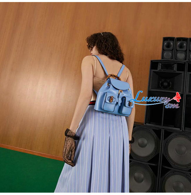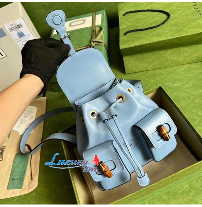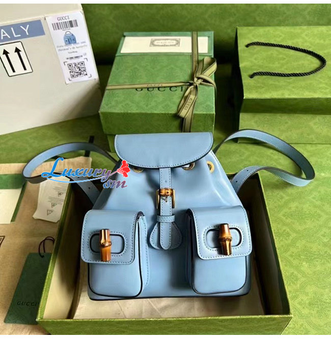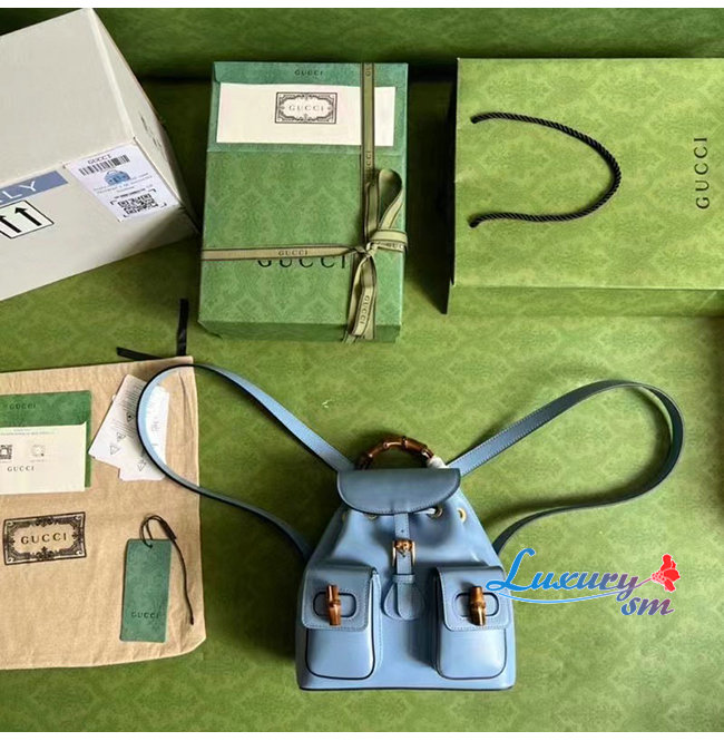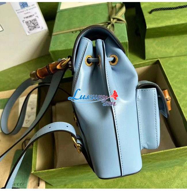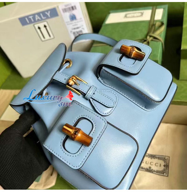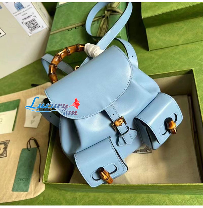 [스페셜오더]GUCCI-702101 4338 구찌 라이트 블루 가죽 뱀부 백팩