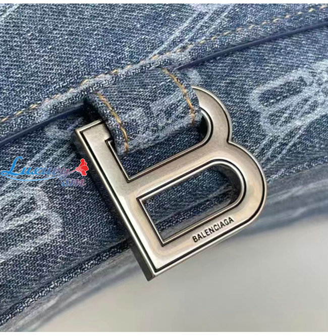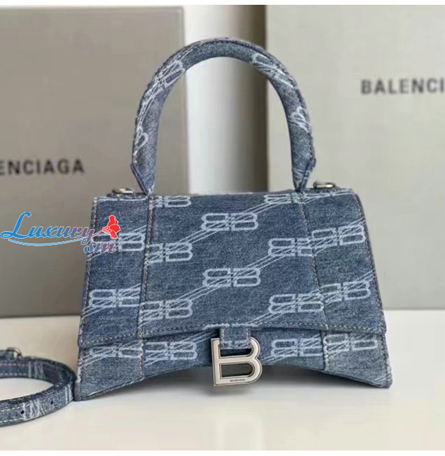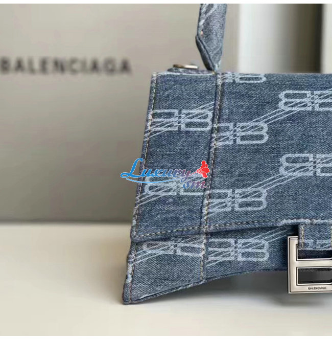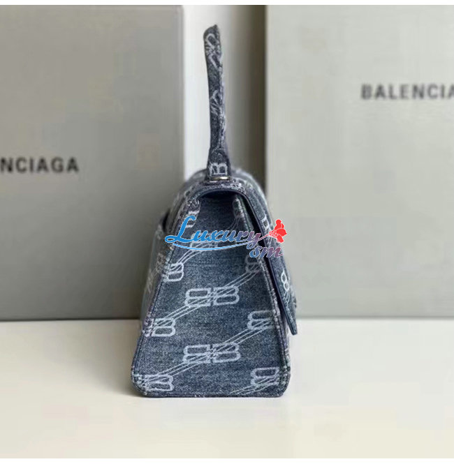 [스페셜오더]BALENCIAGA-593546 발렌시아가 라이트 블루 데님 프린트 HOURGLASS 스몰 핸드백