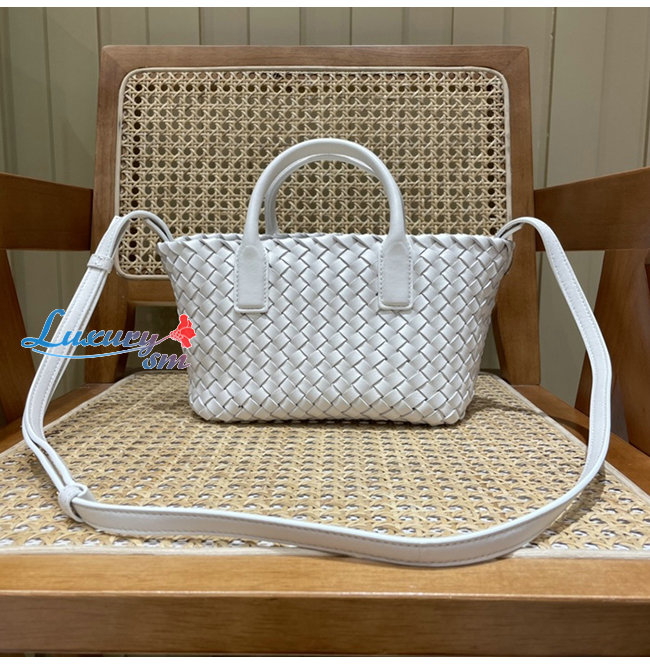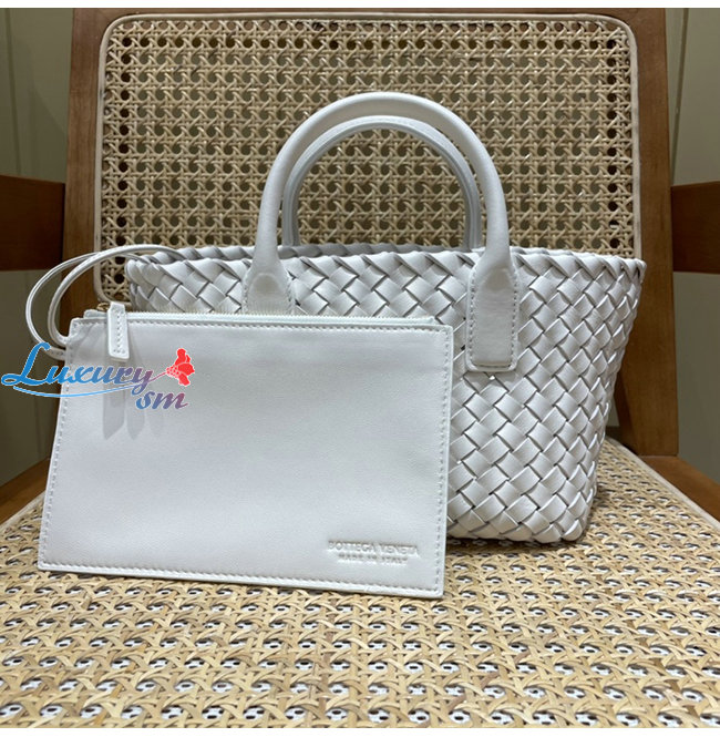 [스페셜오더]BOTTEGA VENETA-709464 보테가 베네타 화이트 인트레치아토 미니 까바 토트백 #보테가페이크쇼핑몰