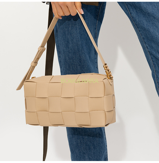그레인 가죽 소재를 인트레치오 위빙으로 완성한 숄더 백