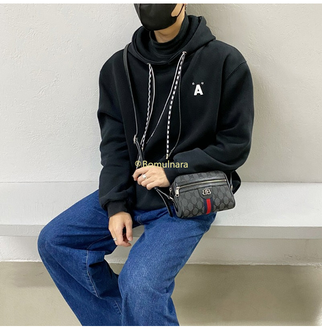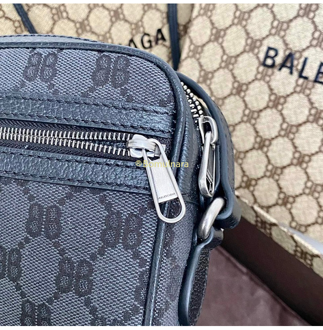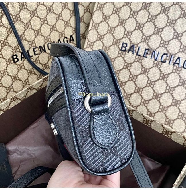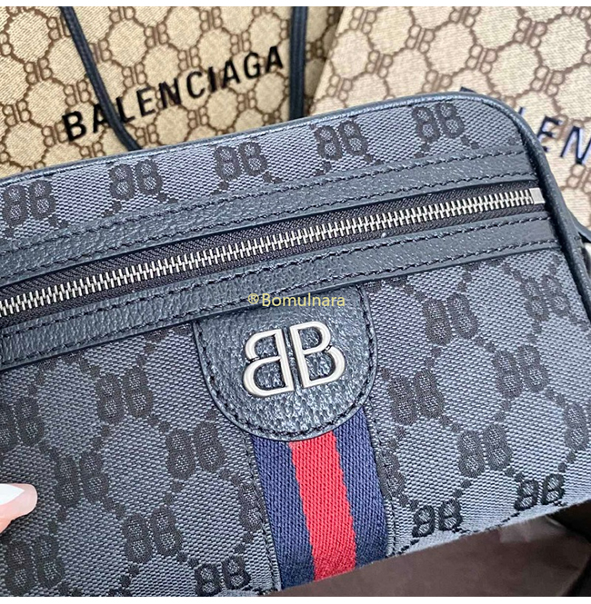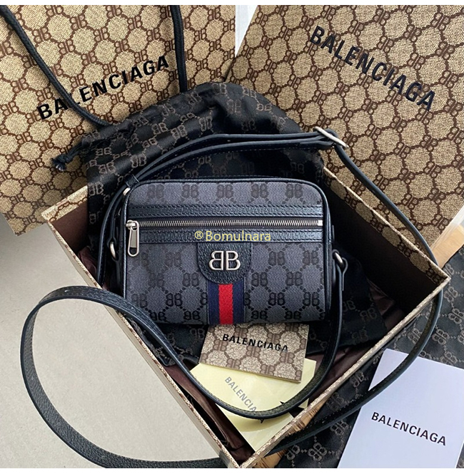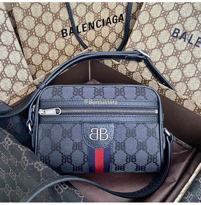[스페셜오더]구찌 × 발렌시아가 해커 프로젝트 블랙 모노그램 캔버스 카메라 백
