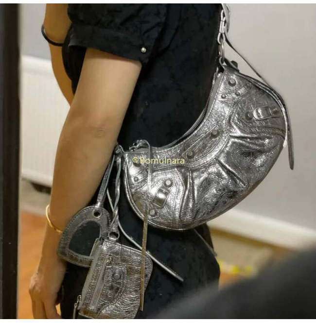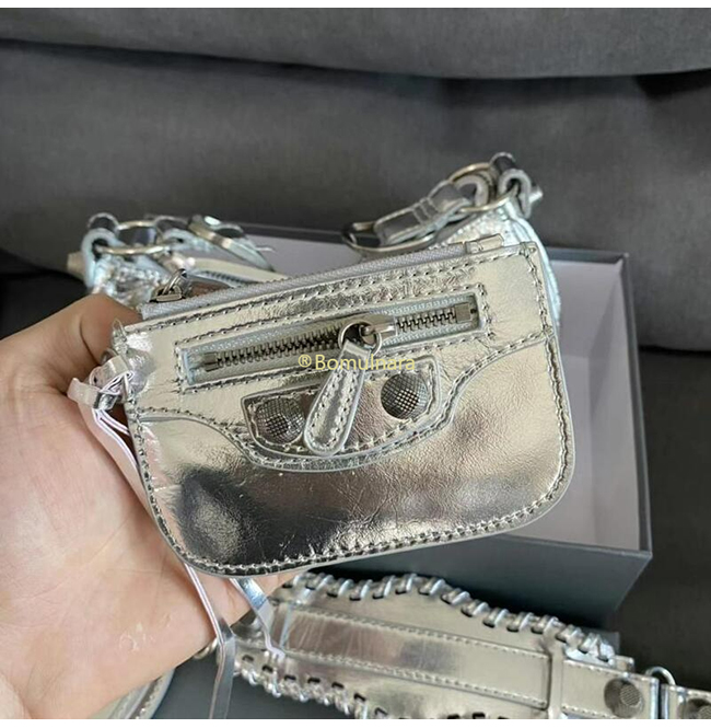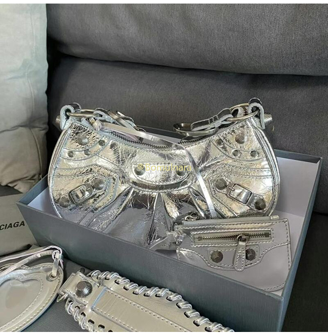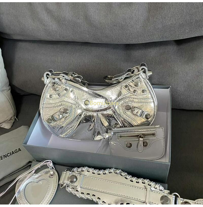 [스페셜오더]BALENCIAGA-671309 발렌시아가 실버 메탈릭 Le Cagole XS 숄더 백