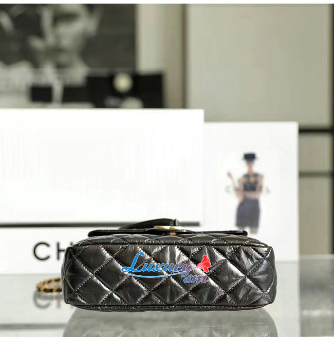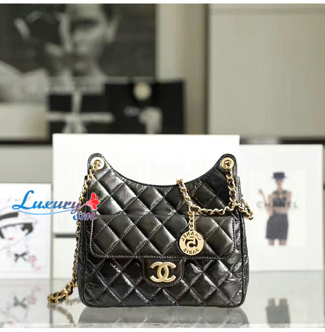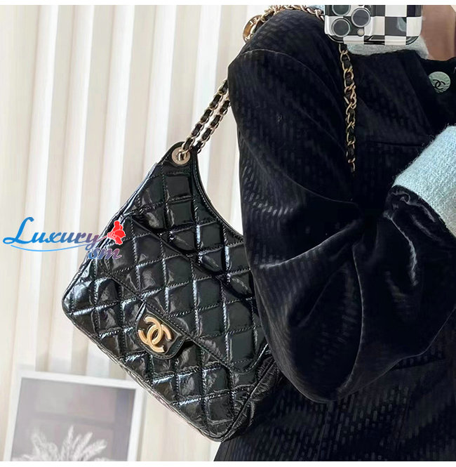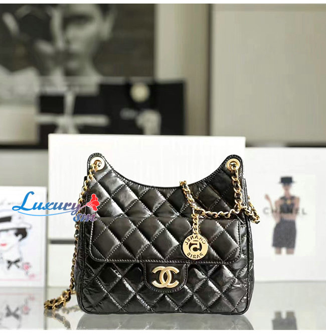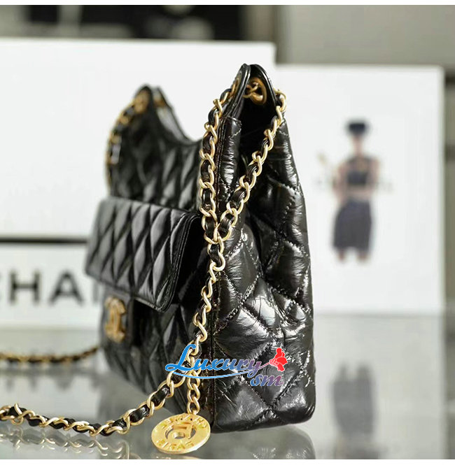 [스페셜오더]CHANEL-AS3690 샤넬 블랙 샤이니 크럼플드 카프스킨 호보 핸드백