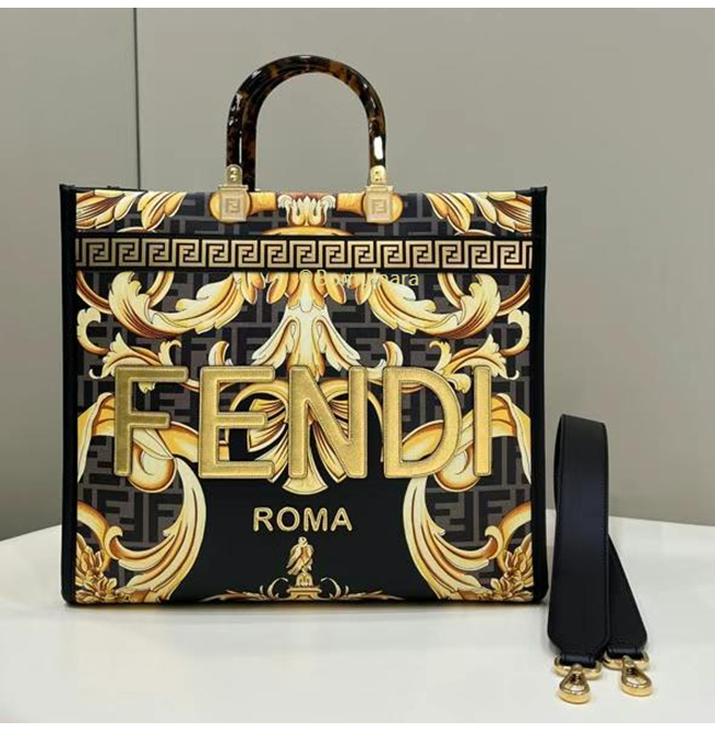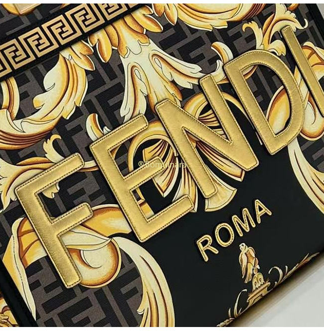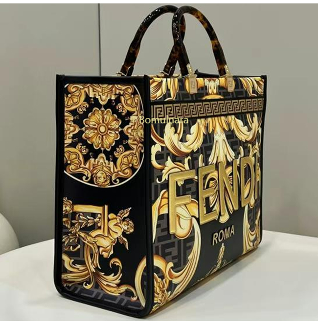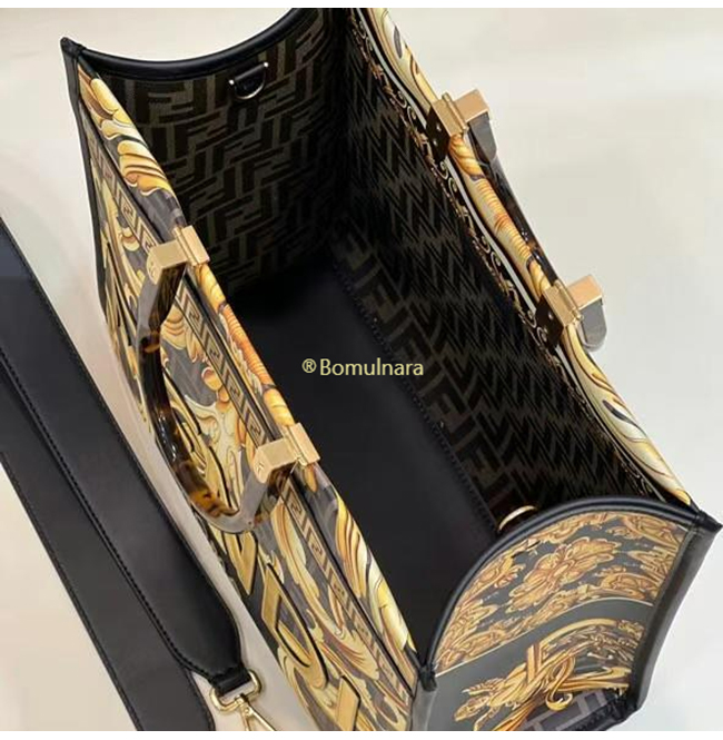 [스페셜오더]FENDI X VERSACE-8BH386 펜디 펜다체 선샤인 골드 로고 프린트 미디엄 쇼퍼 백