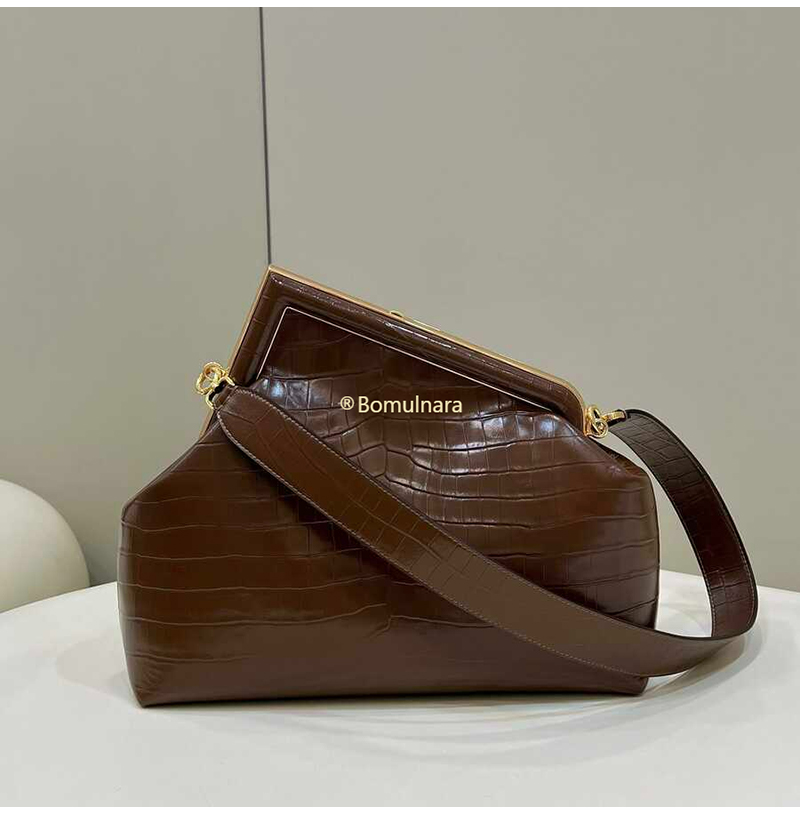 [스페셜오더]FENDI-8BP127 펜디 브라운 크로커다일 퍼스트 미디엄 클러치 백