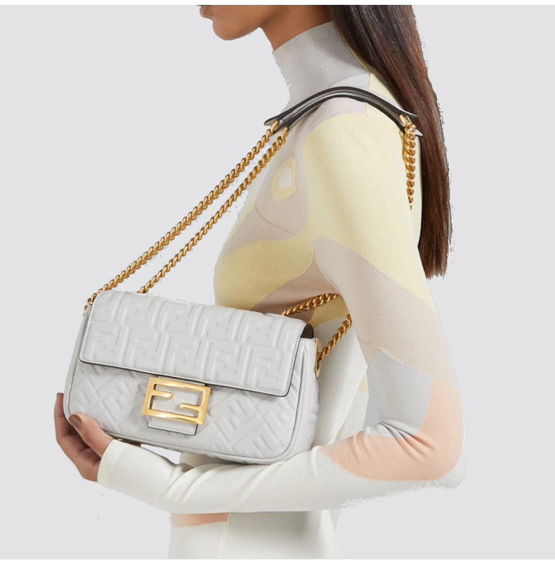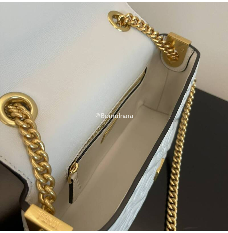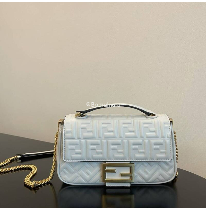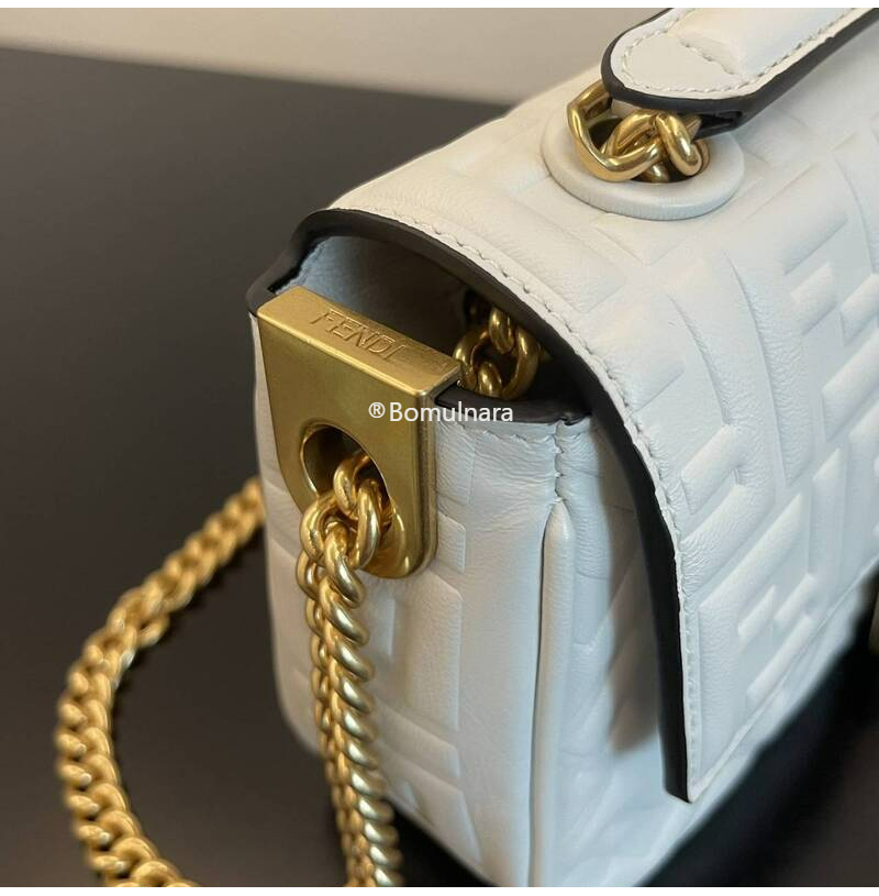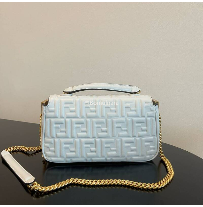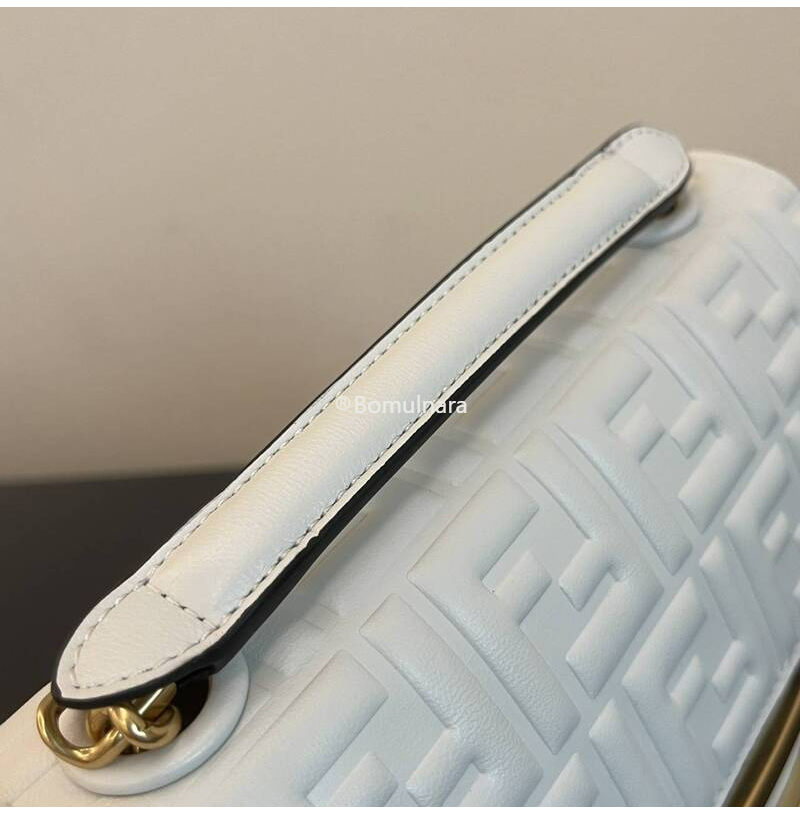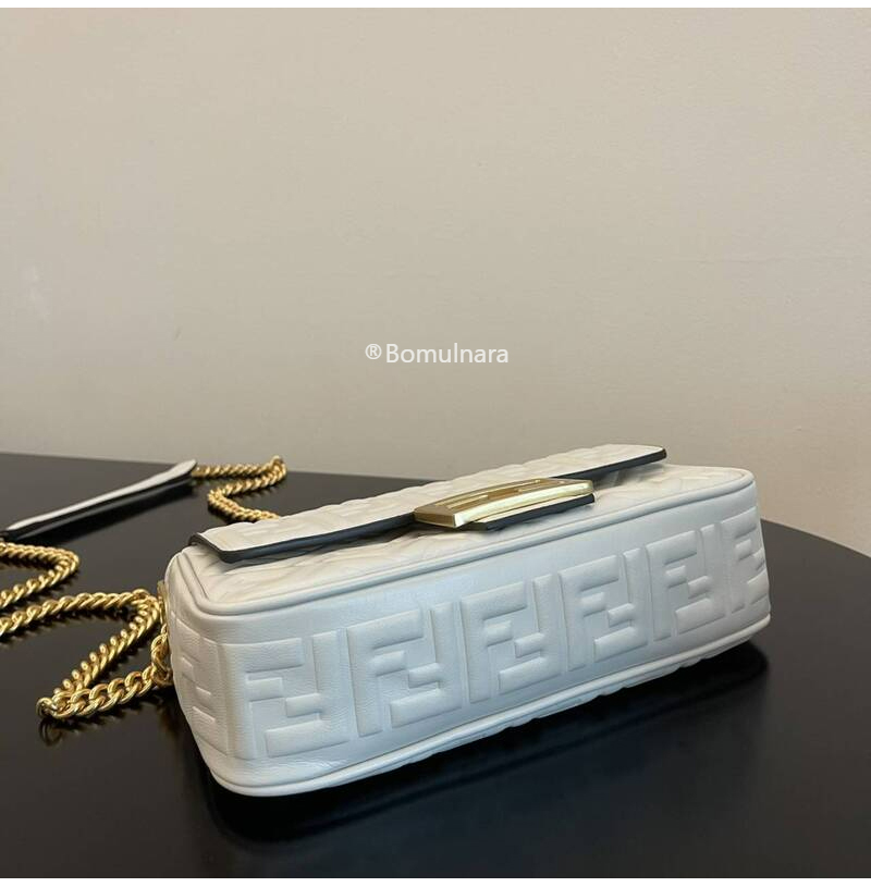 FENDI-8BR793 펜디 화이트 FF 미디 체인 바게트 백
