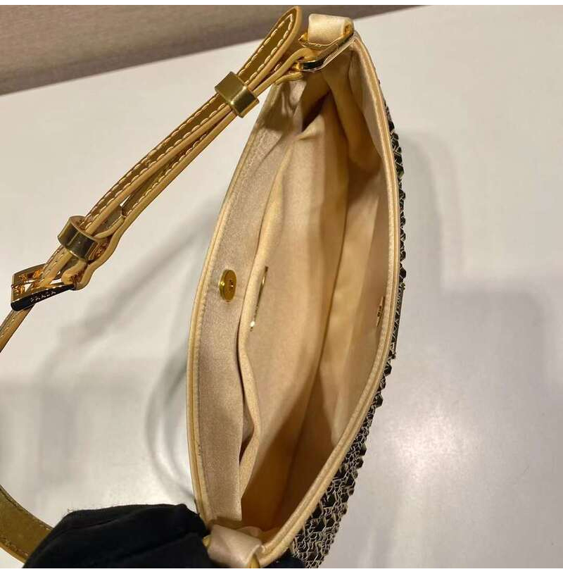[스페셜오더]PRADA-1BC169 프라다 골드 파인애플 크리스털 클레오 새틴 백