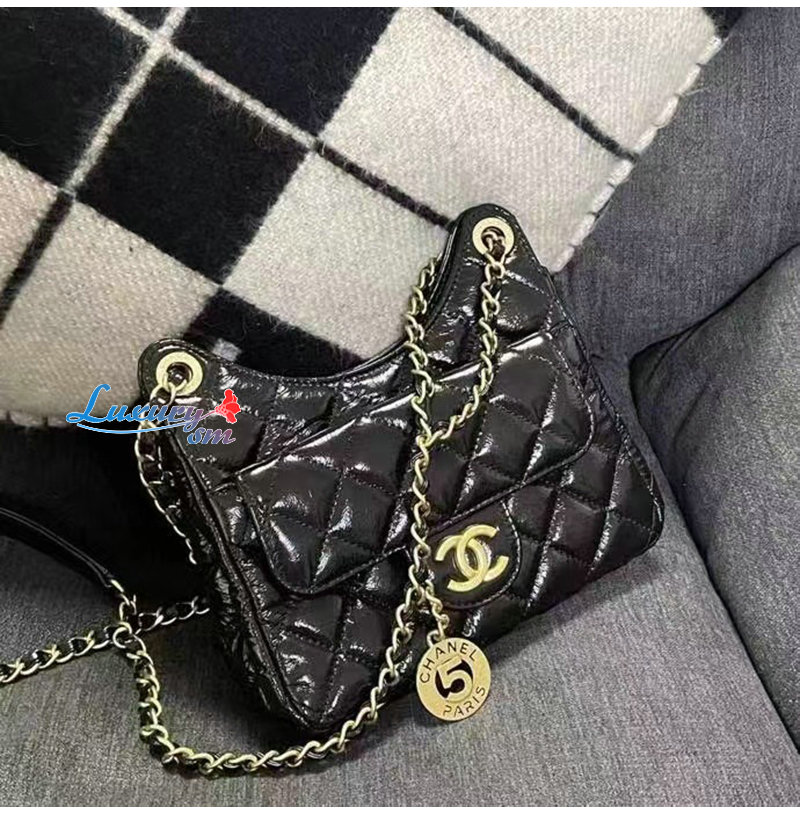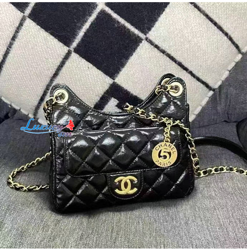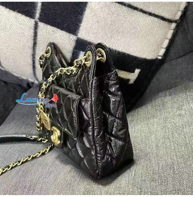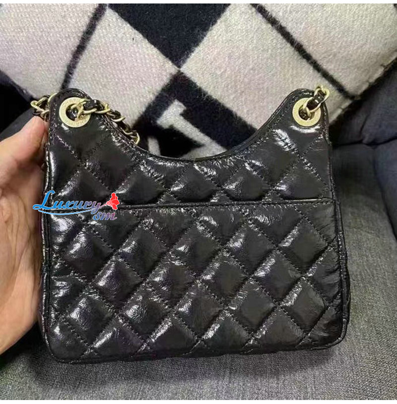 [스페셜오더]CHANEL-AS3710 샤넬 블랙 샤이니 크럼플드 카프스킨 미니 호보 백