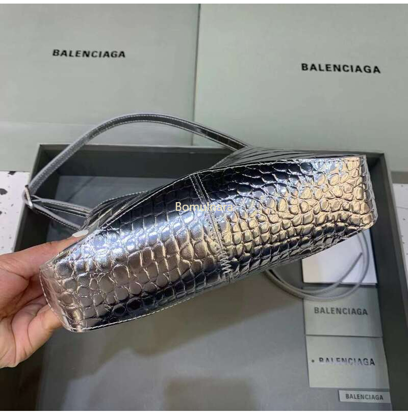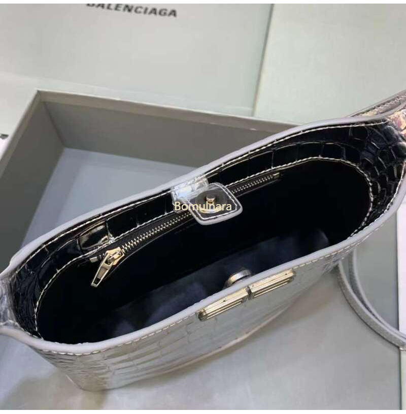 [스페셜오더]BALENCIAGA-695589 발렌시아가 메탈릭 실버 크로커다일 엠보싱 XX 스몰 호보 백