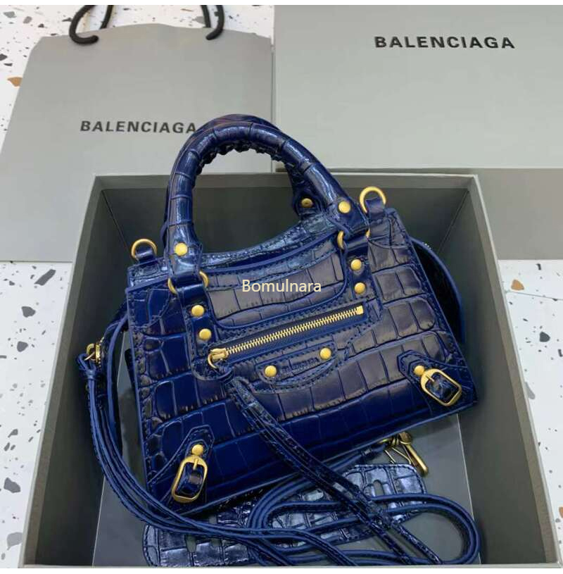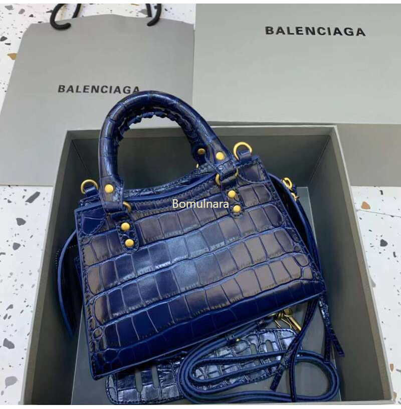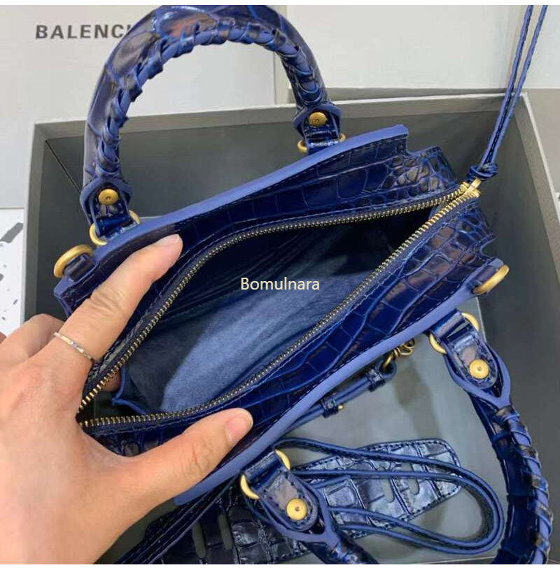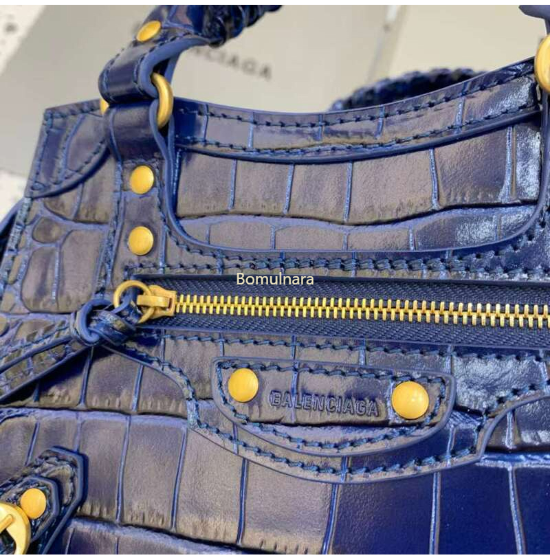 [스페셜오더]BALENCIAGA-638524 발렌시아가 네이비 크로커다일 엠보싱 네오 클래식 미니 탑 핸들 백
