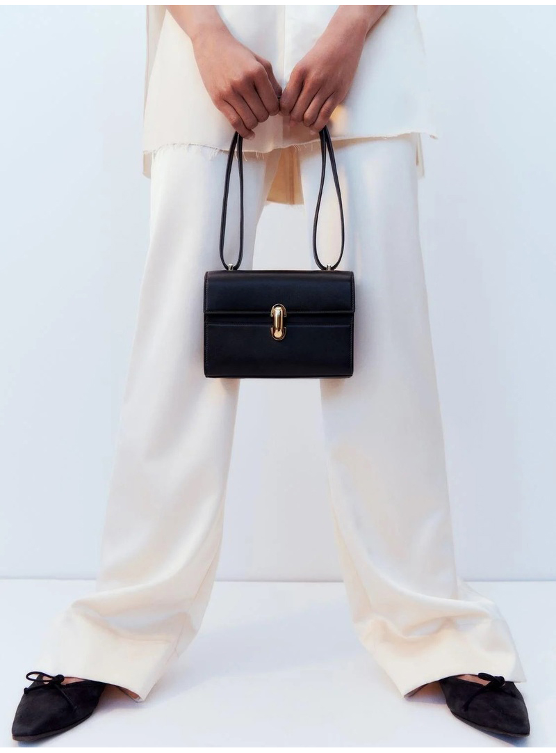 Savette-사베트 블랙 시메트리 턴락 19 숄더 백