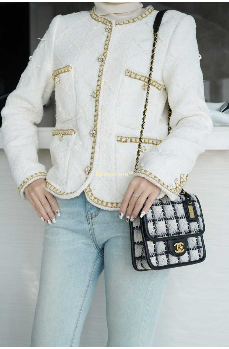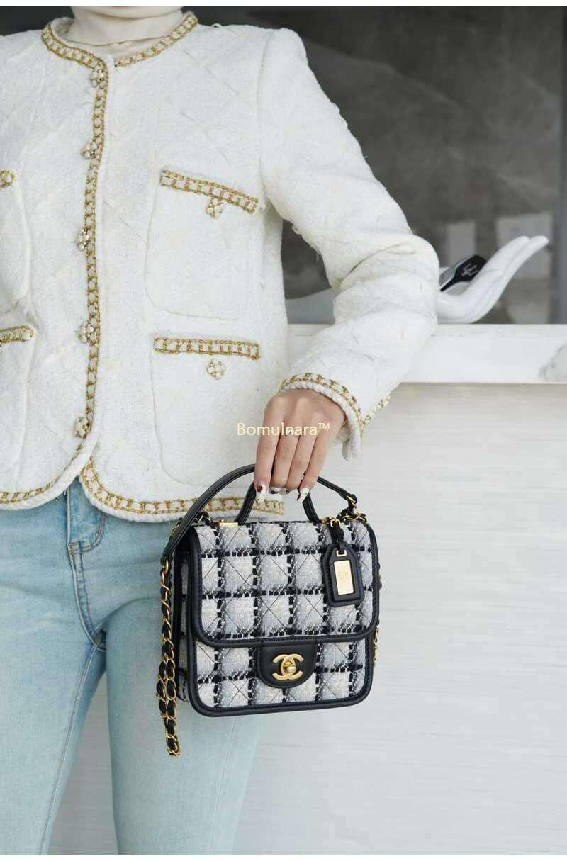 [스페셜오더]CHANEL-AS3652 샤넬 아이보리 트위드 스퀘어 스몰 탑 핸들 플랩 백
