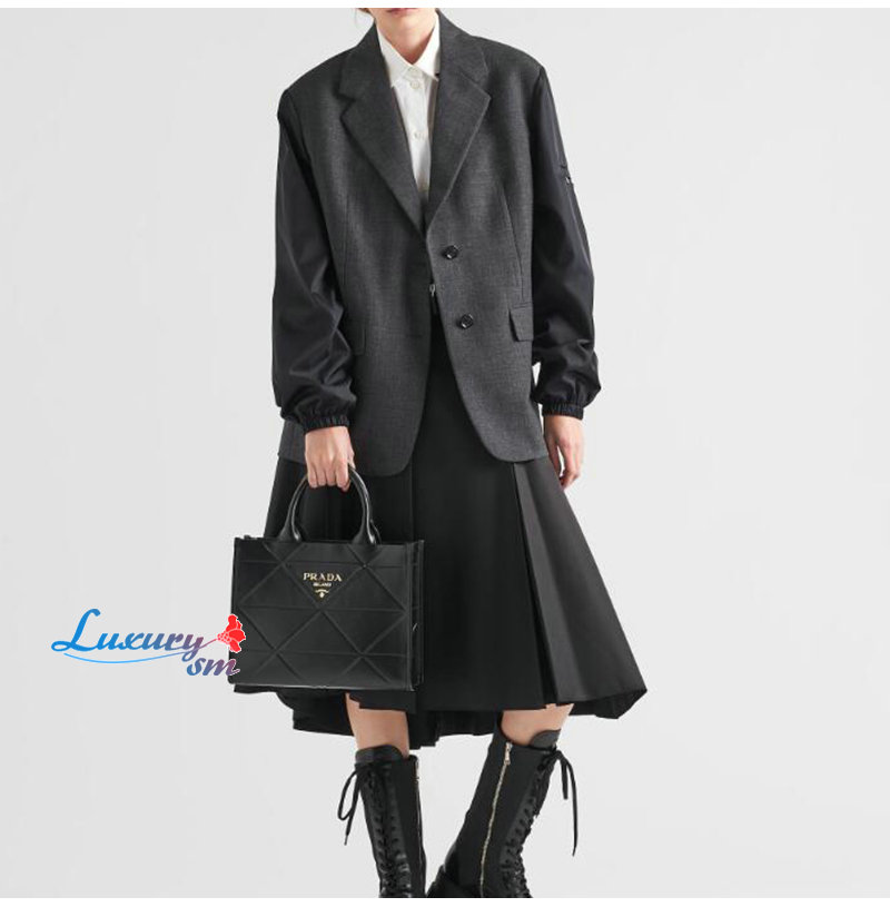 [스페셜오더]PRADA-1BA378 프라다 블랙 탑스티치 장식 미디엄 가죽 핸드백