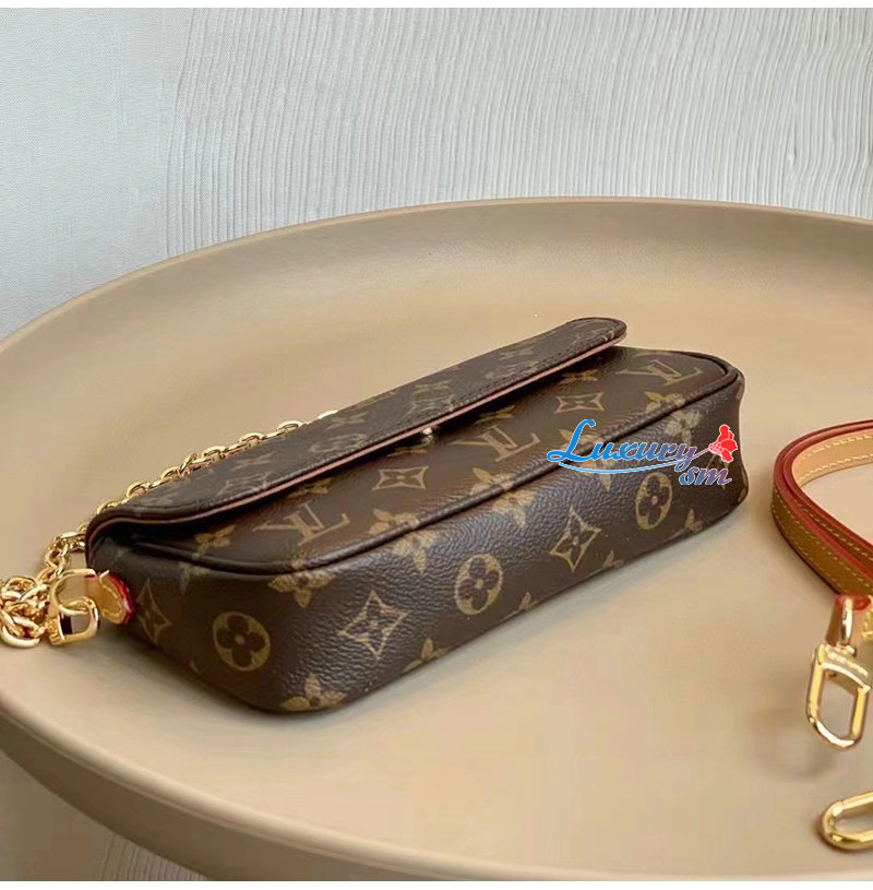 모노그램 캔버스 소재. 골드 색상의 탈착형 체인