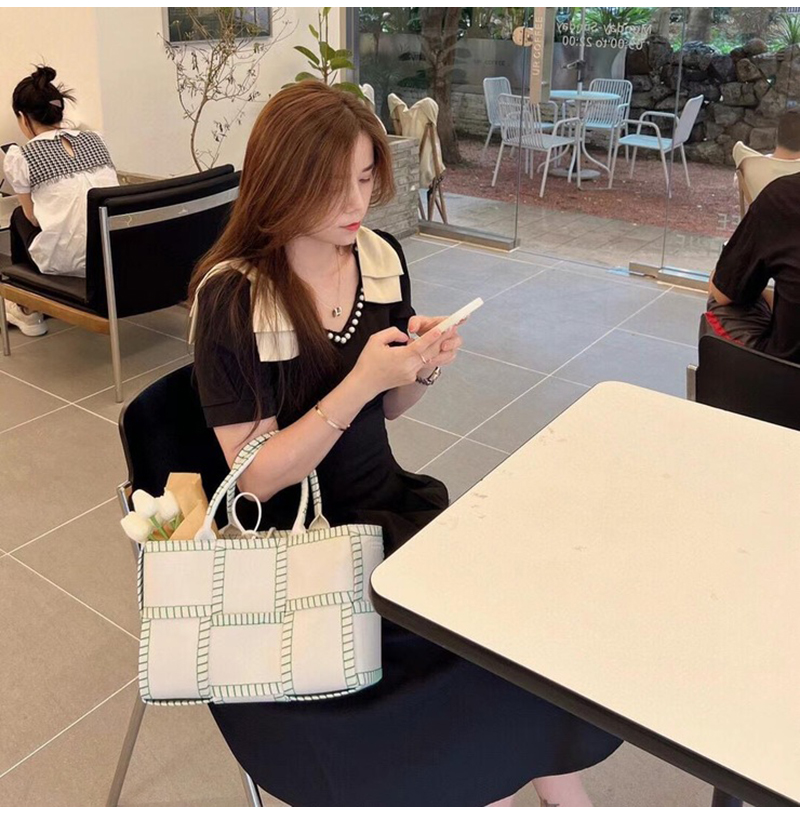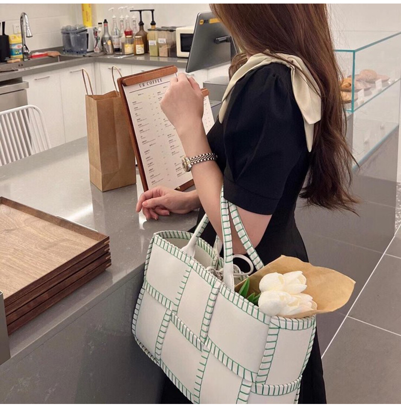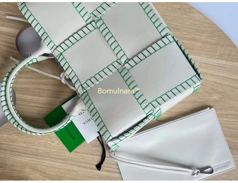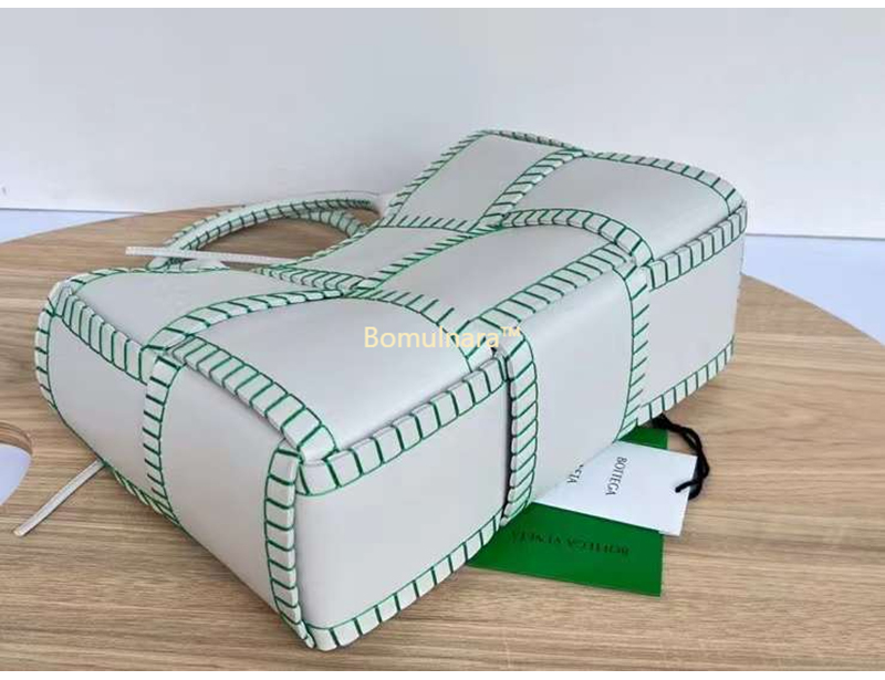 [스페셜오더]BOTTEGA VENETA-691401 보테가 베네타 화이트/패럿 그린 스티치 장식 아르코 스몰 토트 백 30CM