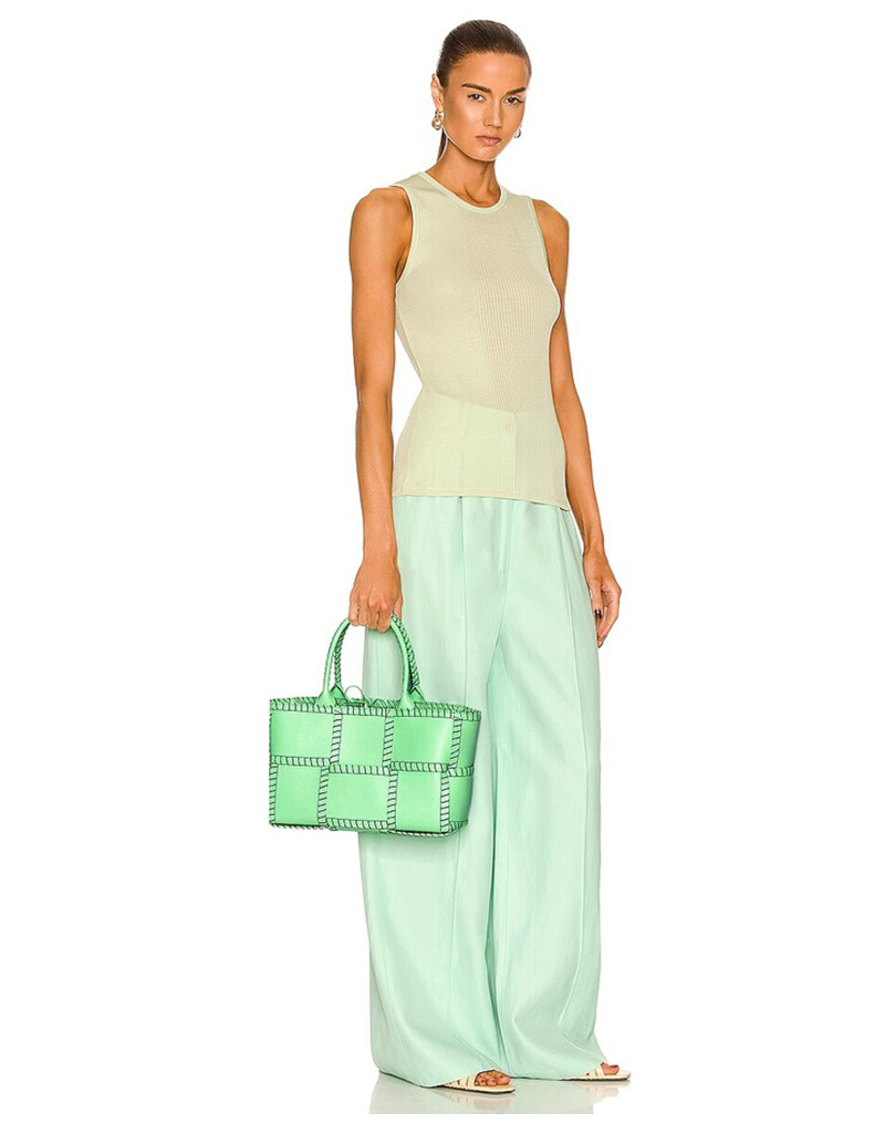 [스페셜오더]BOTTEGA VENETA-691401 보테가 베네타 화이트/패럿 그린 스티치 장식 아르코 스몰 토트 백 30CM