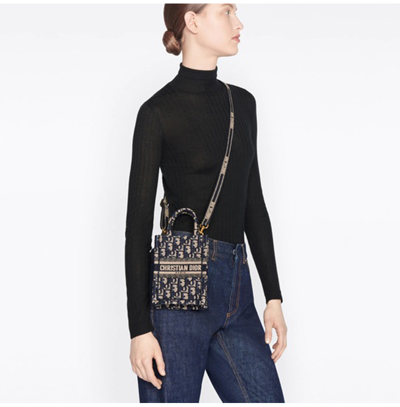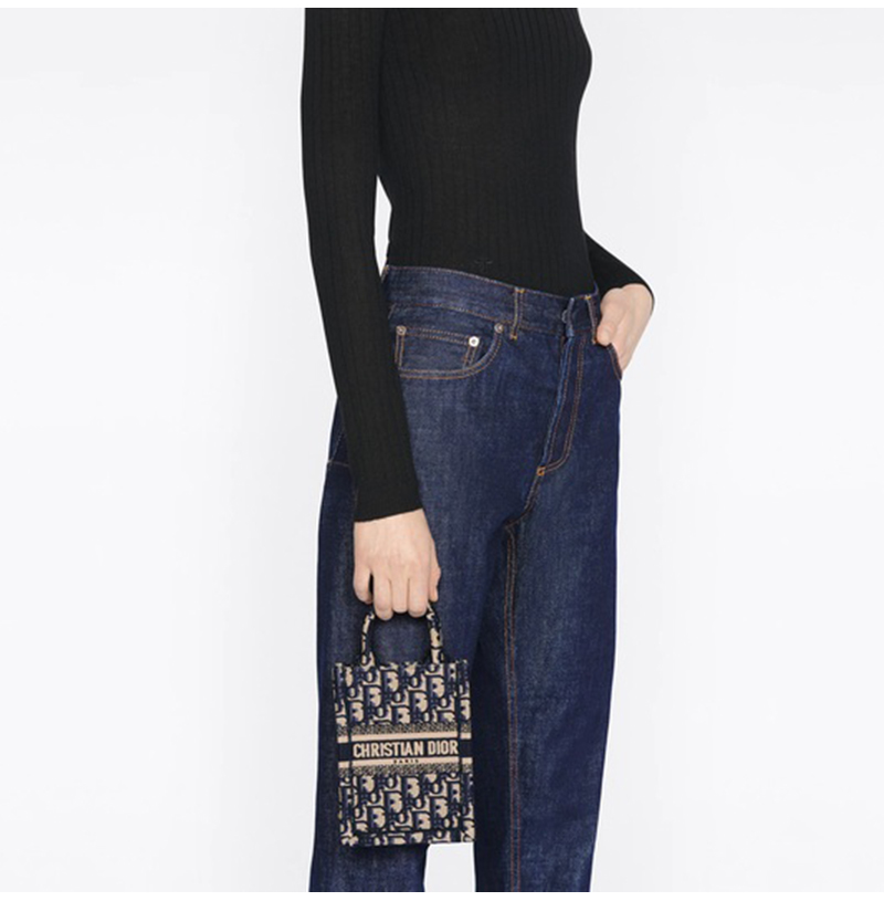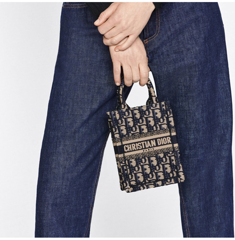 [스페셜오더]DIOR-S5555 디올 블루 OBLIQUE 자수 BOOK TOTE 미니 휴대폰 백