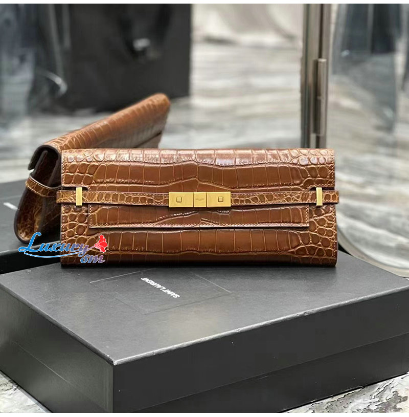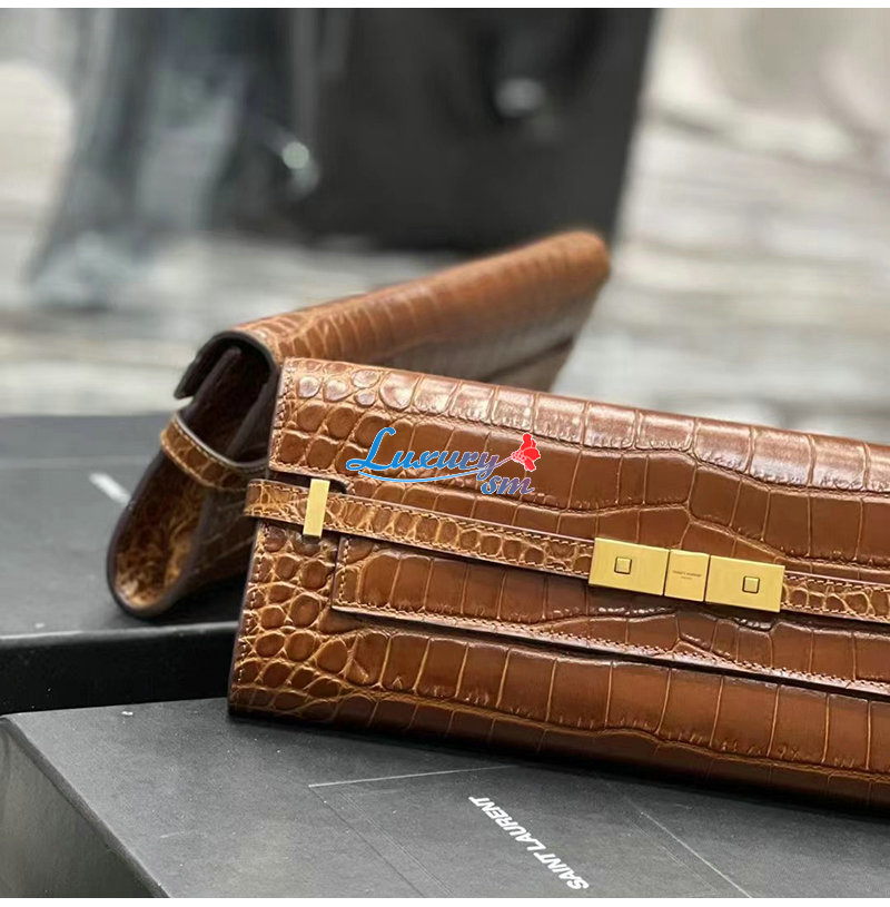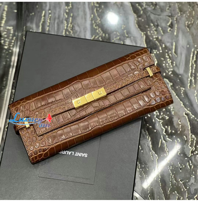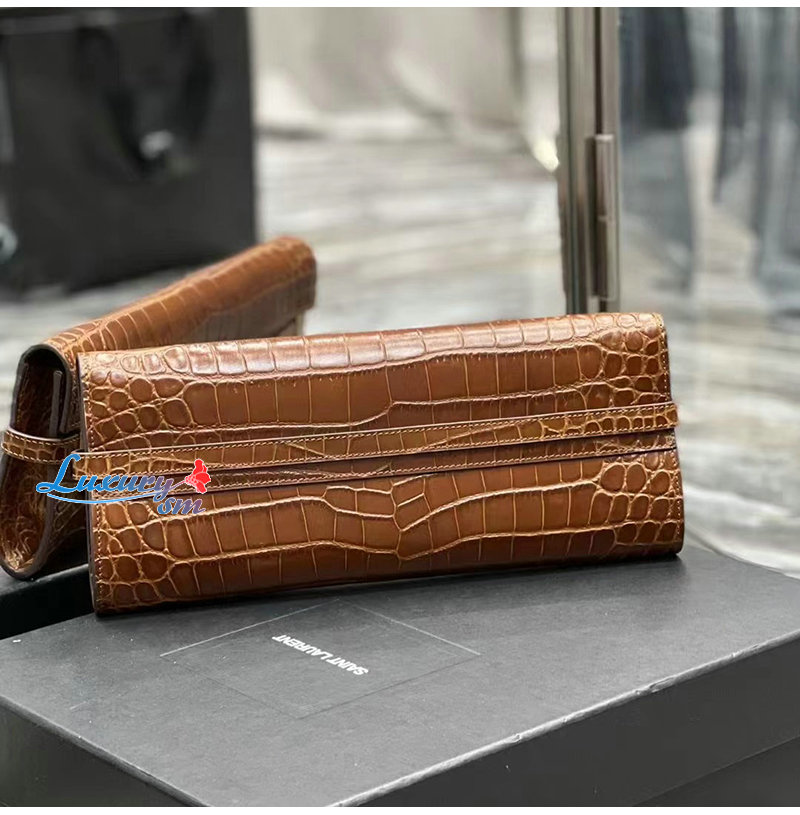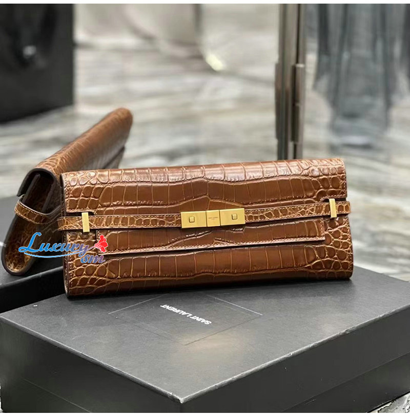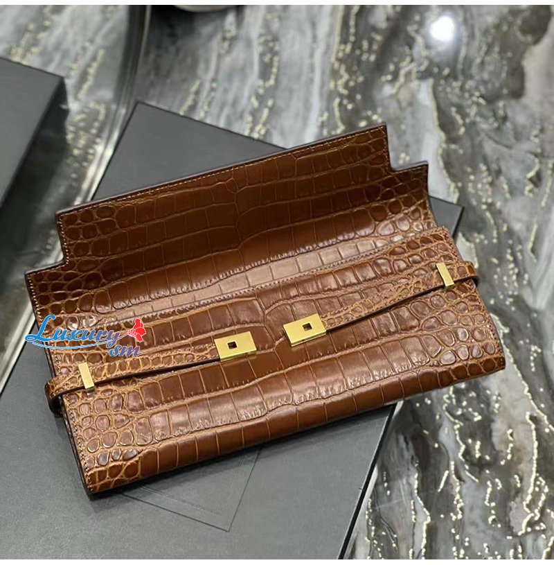 [스페셜오더]SAINT LAURENT-695949 생 로랑 브라운 크로커다일 엠보스드 가죽 MANHATTAN 클러치
