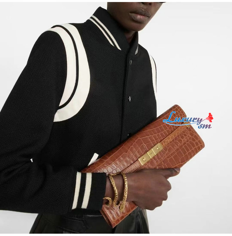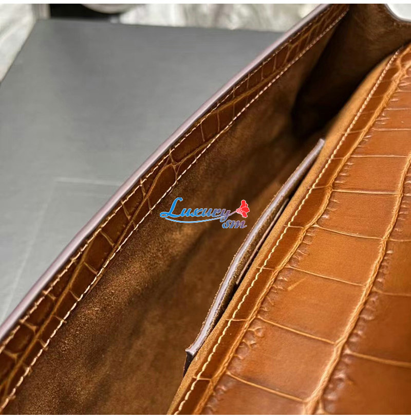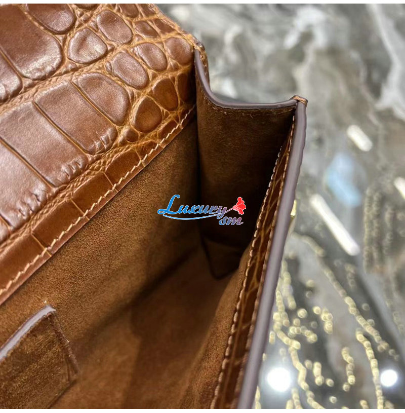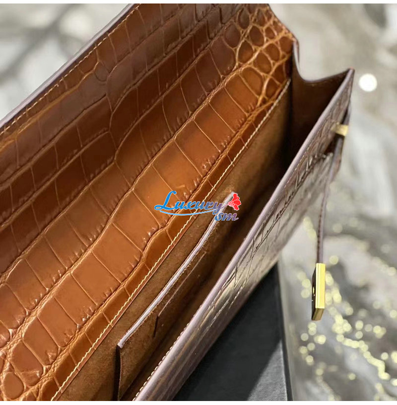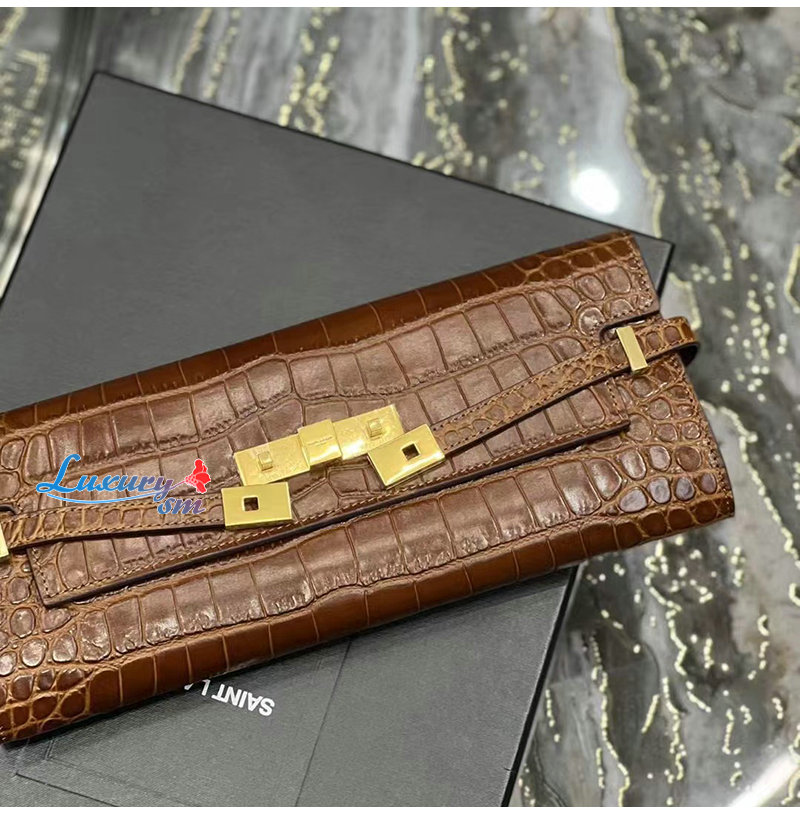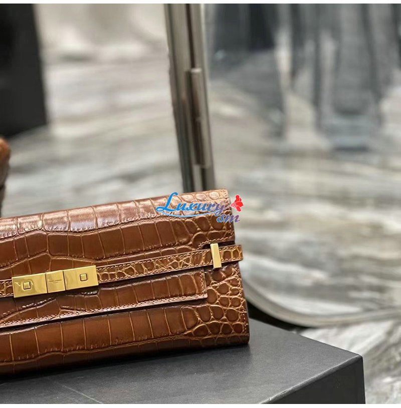 [스페셜오더]SAINT LAURENT-695949 생 로랑 브라운 크로커다일 엠보스드 가죽 MANHATTAN 클러치