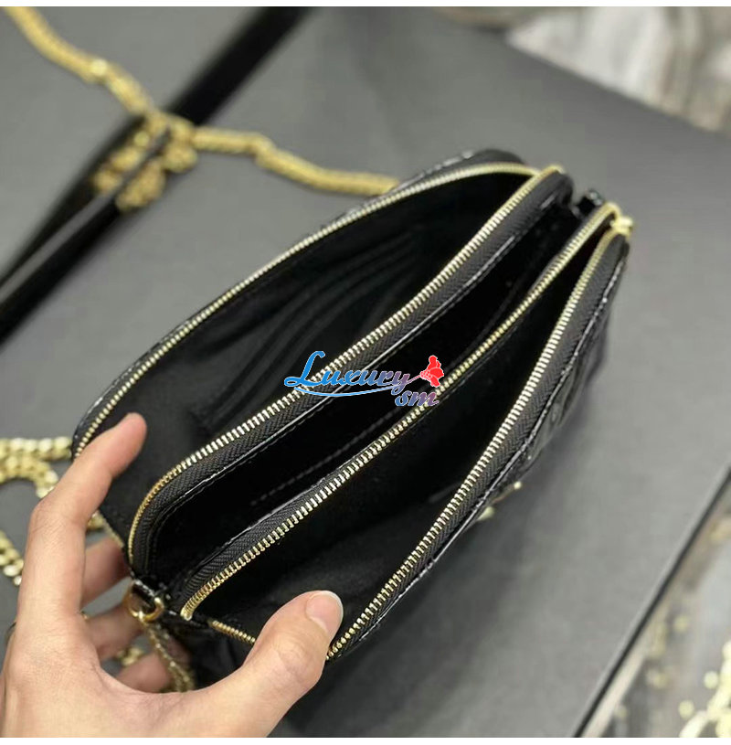[스페셜오더]SAINT LAURENT-608941 생 로랑 블랙 페이턴트 가죽 베키 더블 집 파우치