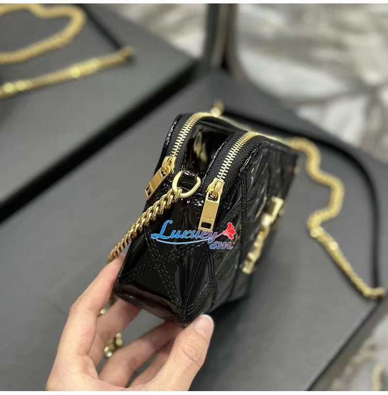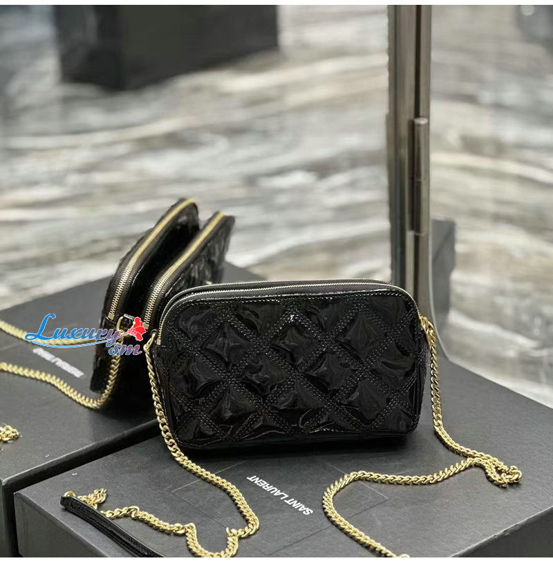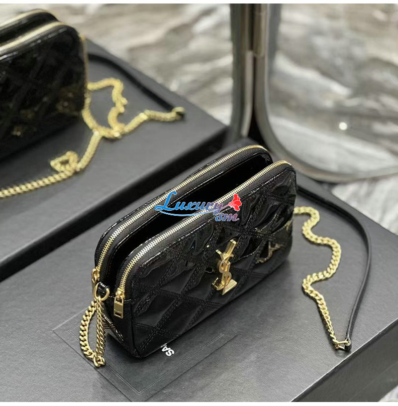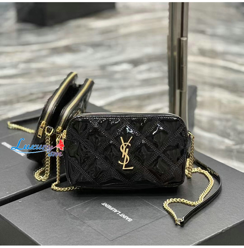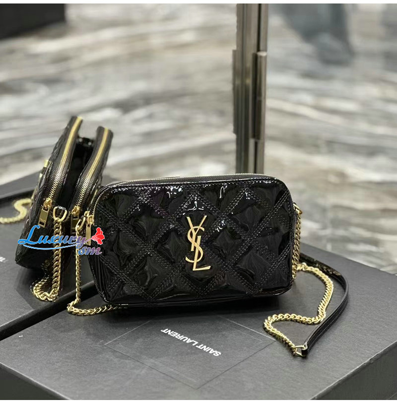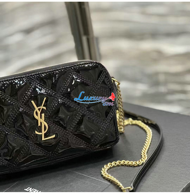 YSL 이니셜로 장식된 다이아몬드 퀼팅 더