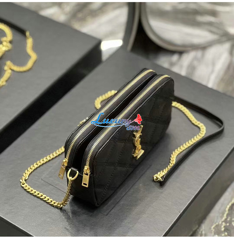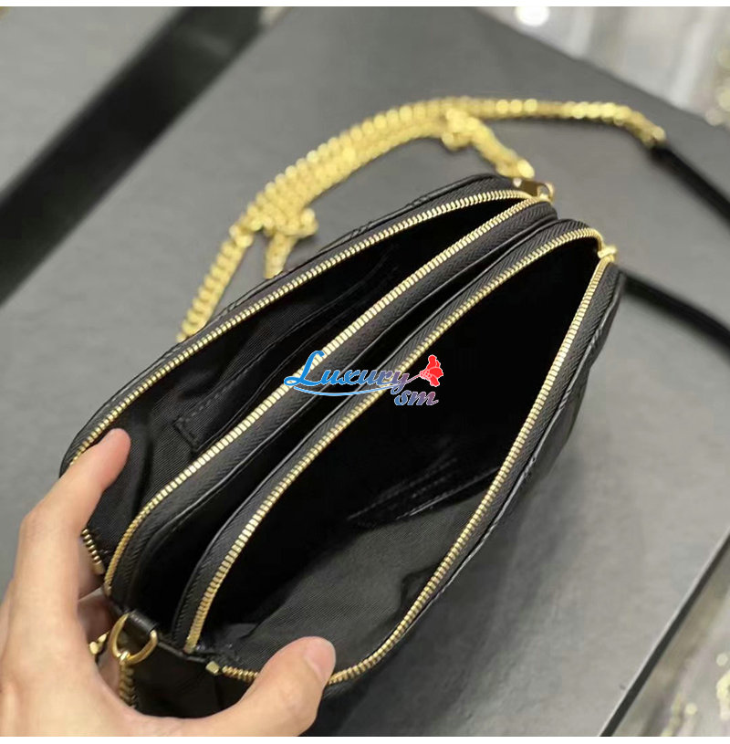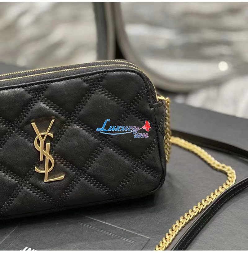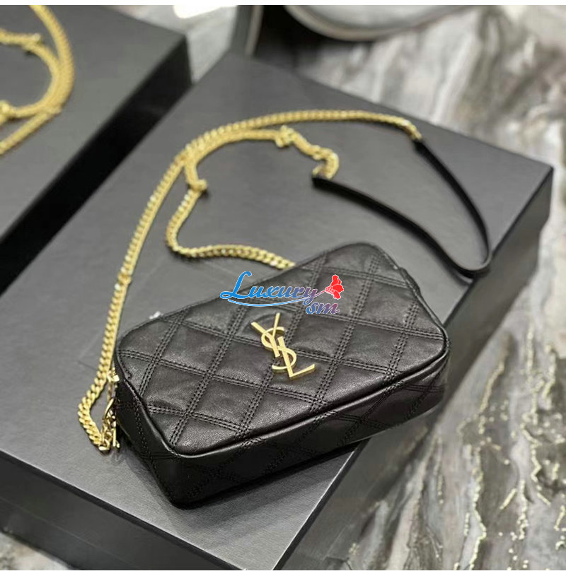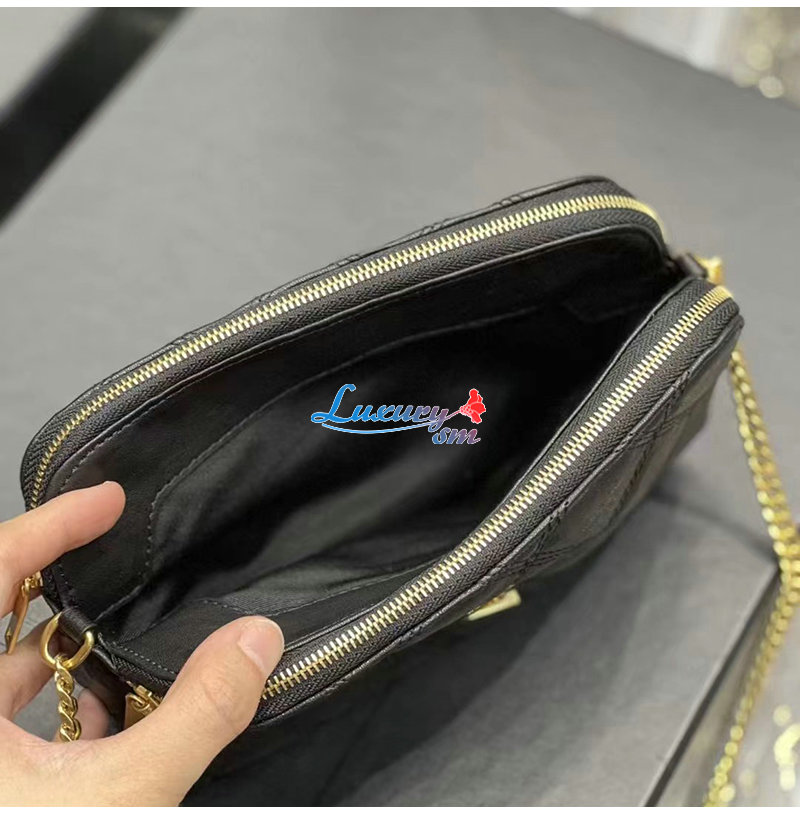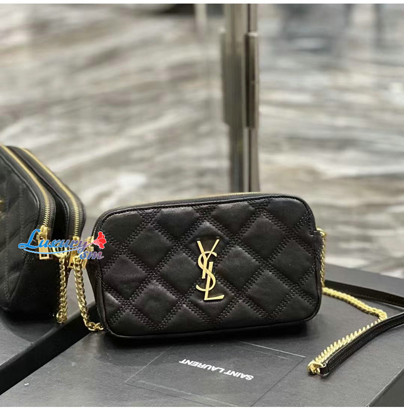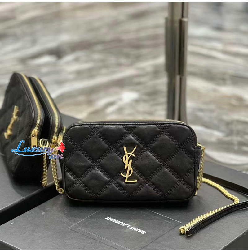 YSL 이니셜로 장식된 다이아몬드 퀼팅 더