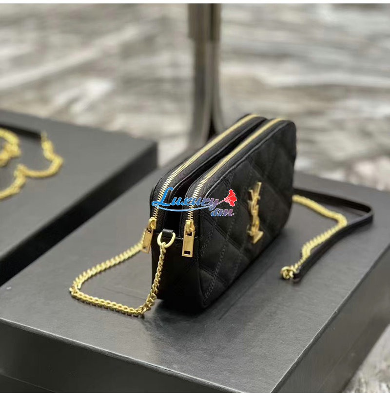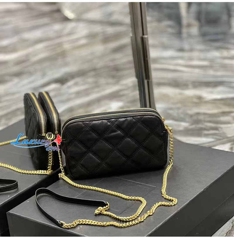 [스페셜오더]SAINT LAURENT-608941 생 로랑 블랙 램스킨 금장 베키 더블 집 파우치