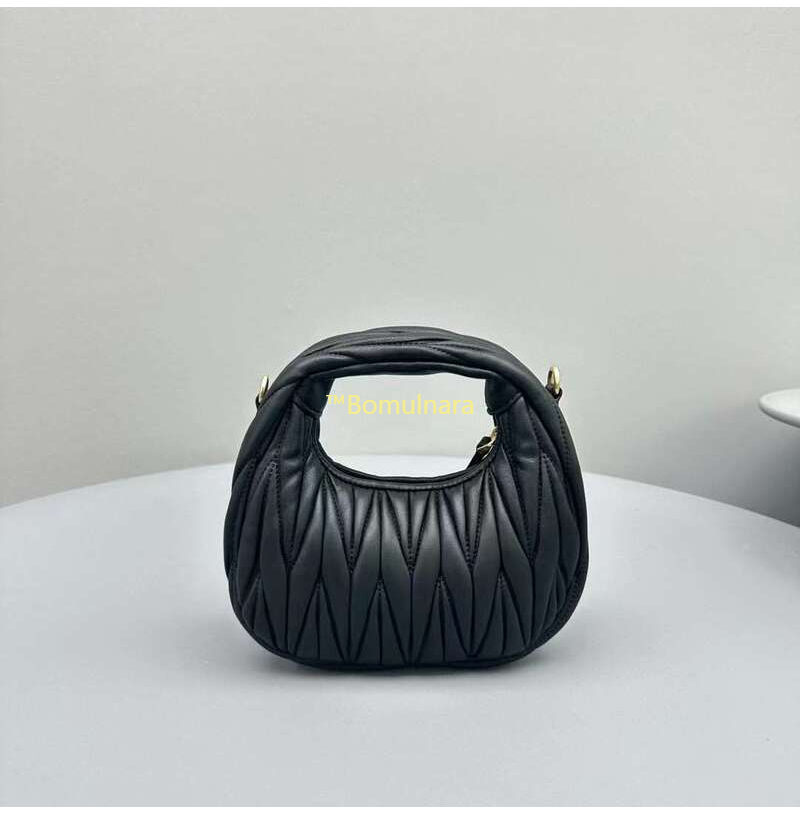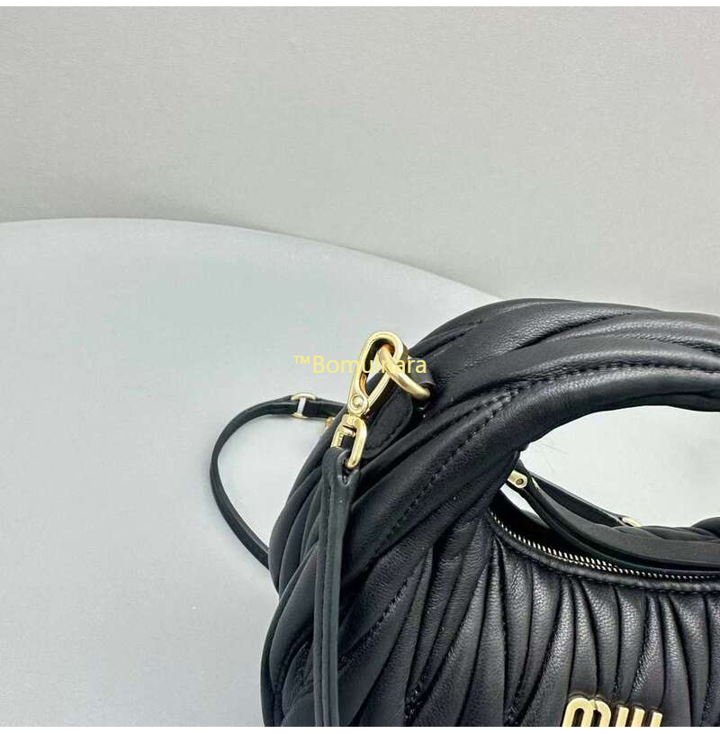 [스페셜오더]MIUMIU-5BP078 미우미우 블랙 완더 마테라쎄 나파 가죽 호보 미니 숄더백