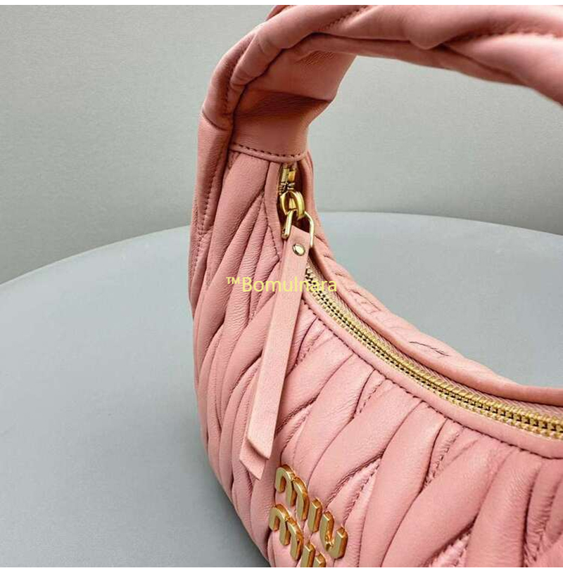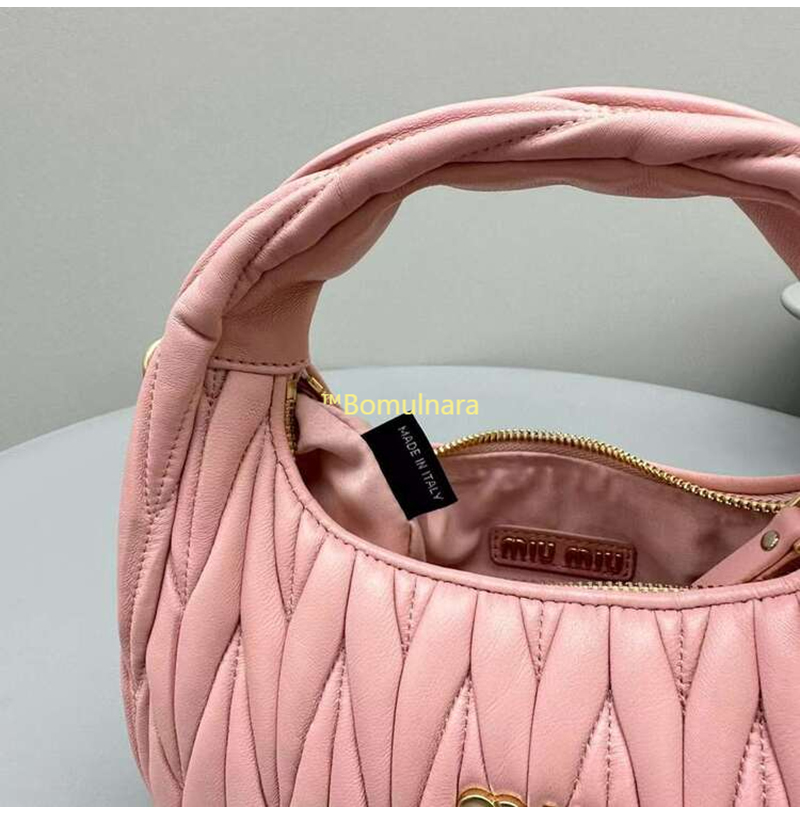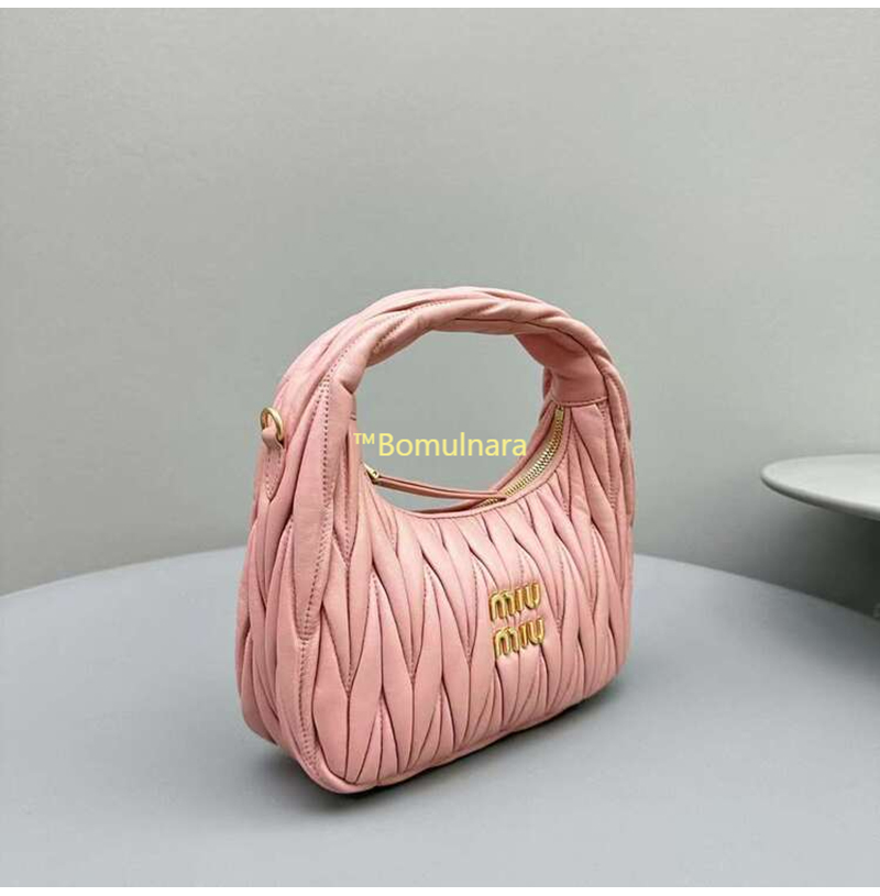 [스페셜오더]MIUMIU-5BC125 미우미우 앨러베스터 핑크 완더 마테라쎄 나파 가죽 호보 스몰 숄더백