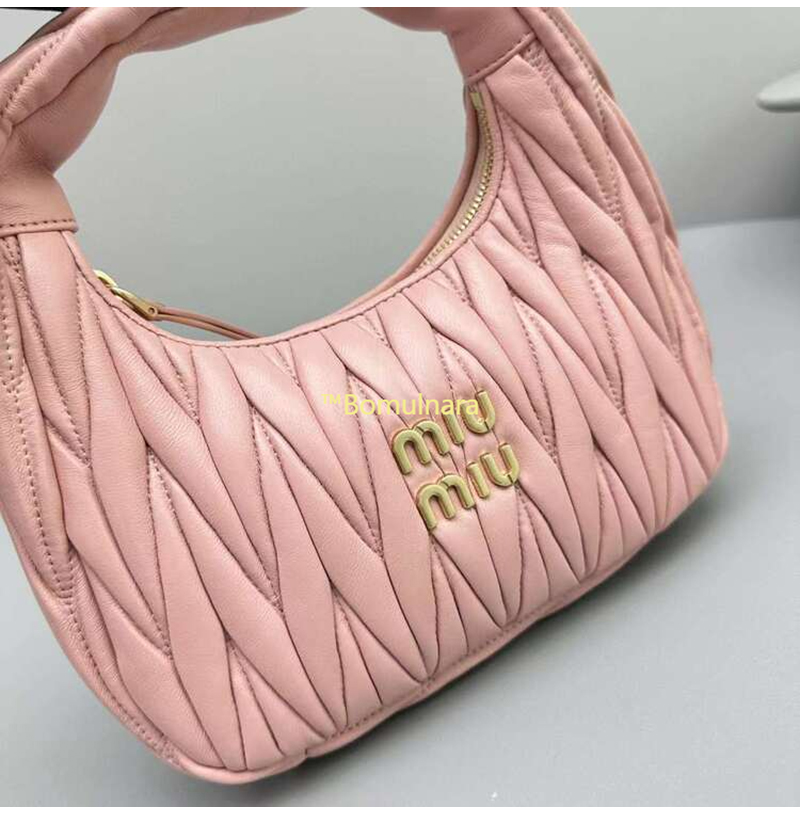 [스페셜오더]MIUMIU-5BC125 미우미우 베고니아 핑크 완더 마테라쎄 나파 가죽 호보 스몰 숄더백