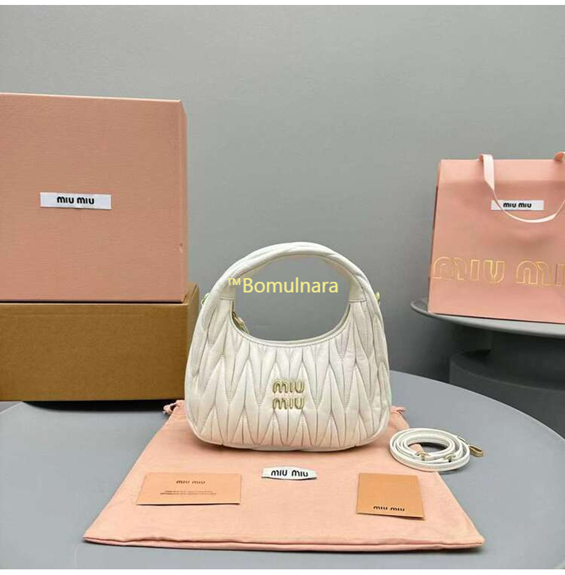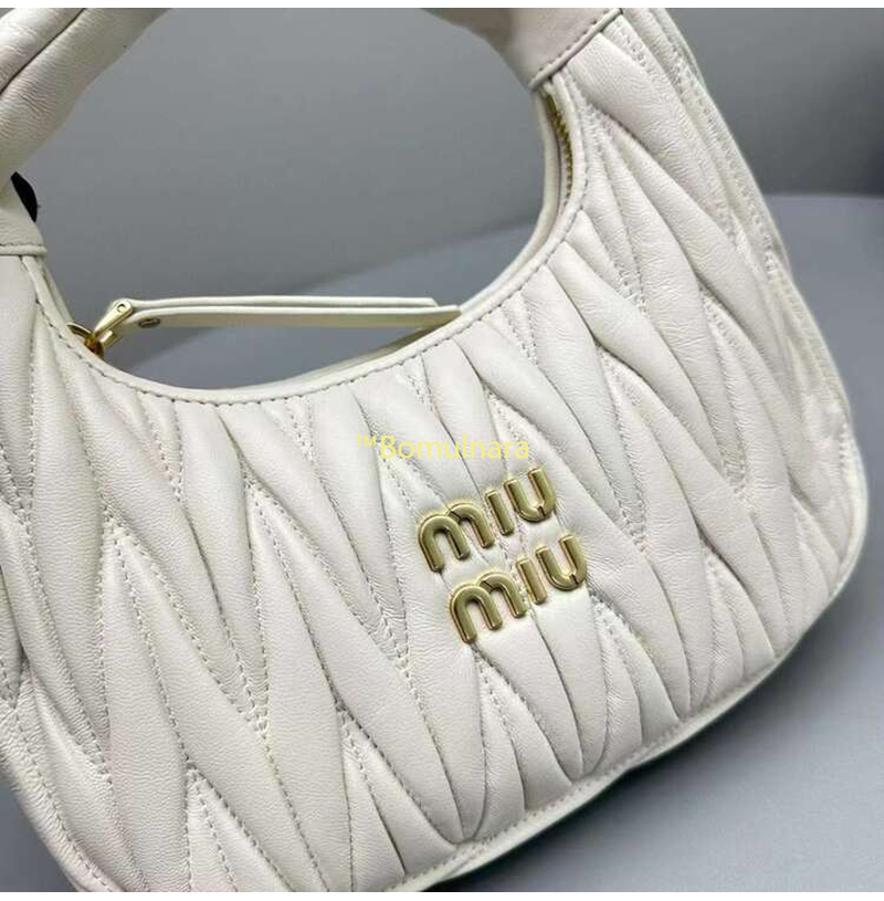 [스페셜오더]MIUMIU-5BC125 미우미우 화이트 완더 마테라쎄 나파 가죽 호보 스몰 숄더백