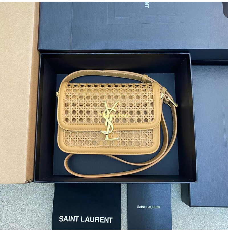 [스페셜오더]SAINT LAURENT-642898 생 로랑 브라운 케인워크 베지터블 태닝 가죽 솔페리노 미디엄 사첼백 23CM