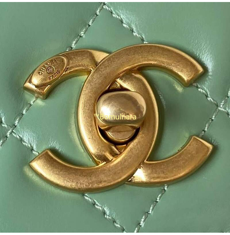 [스페셜오더]CHANEL-AS3886 샤넬 라이트 그린 샤이니 카프스킨 골드 핸들 장식 미니 플랩 백
