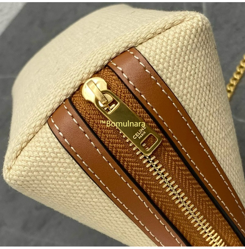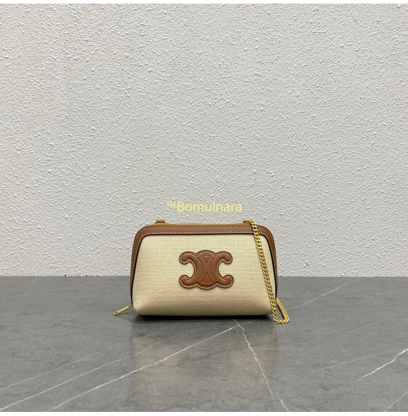 [스페셜오더]CELINE-10E383 셀린느 내추럴/탠 텍스타일 퀴르 트리옹프 체인 클러치