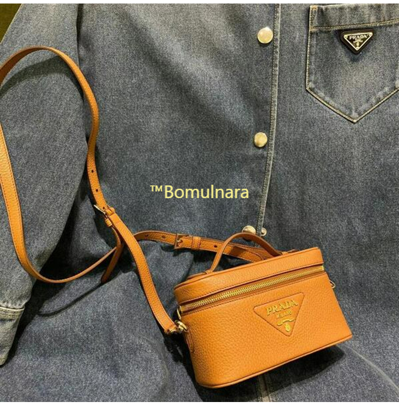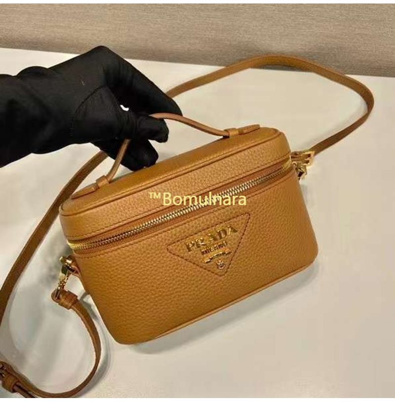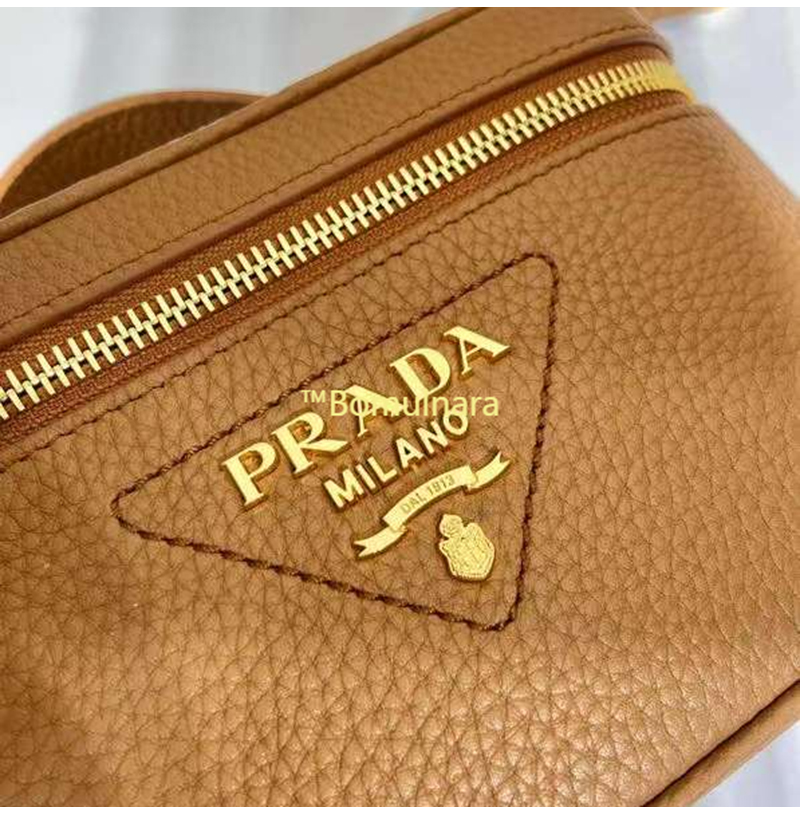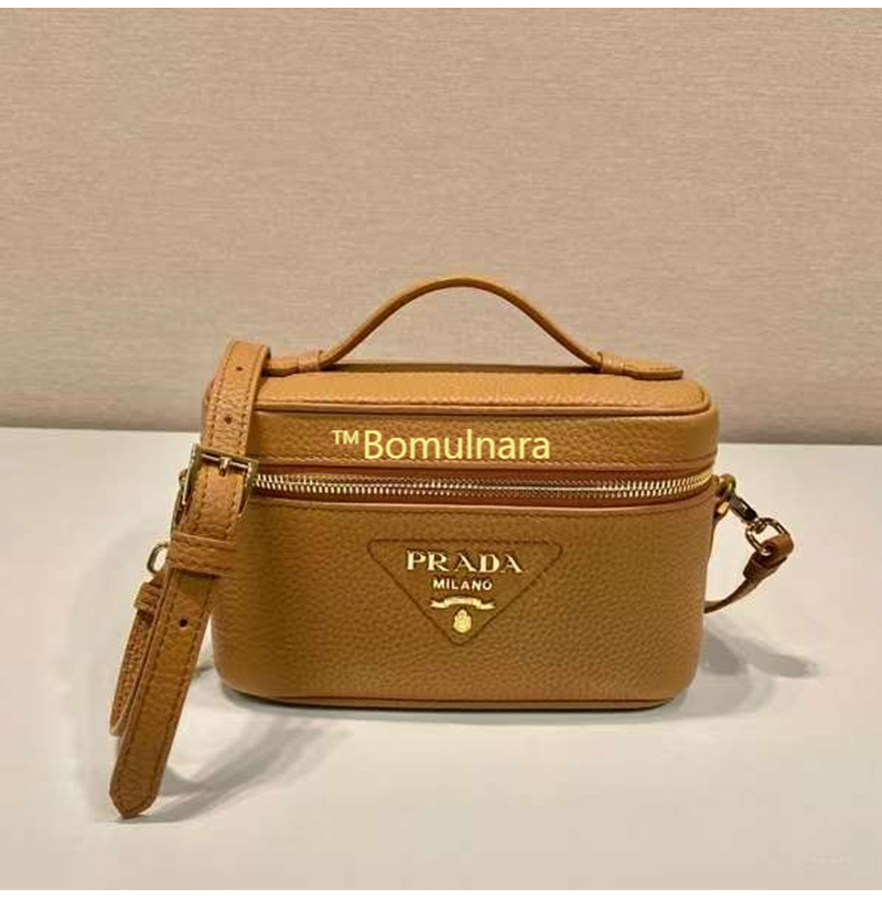 [스페셜오더]PRADA-1BH202 프라다 카라멜 레터링 로고 미니 뷰티 케이스