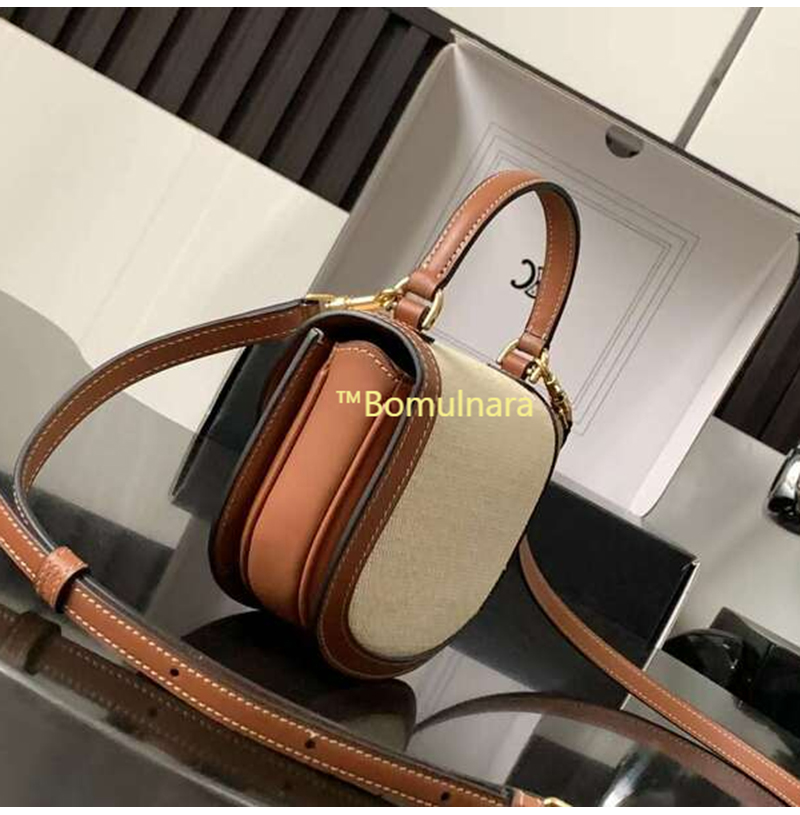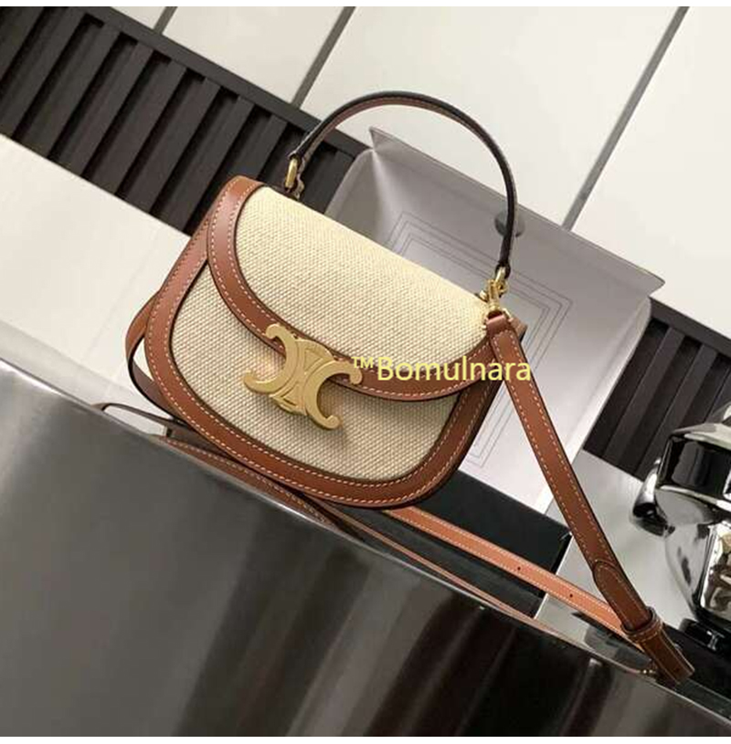 [스페셜오더]CELINE-10K502 셀린느 탠/내추럴 트리옹프 택스타일 베사체 미니 탑 핸들백