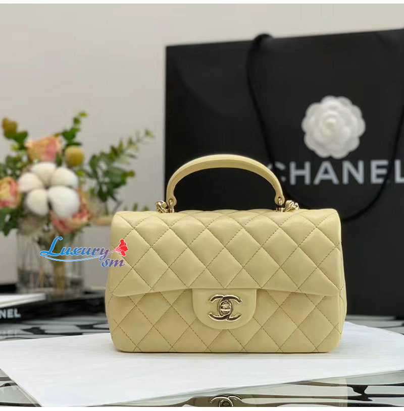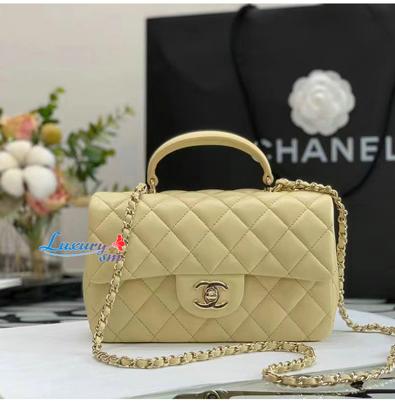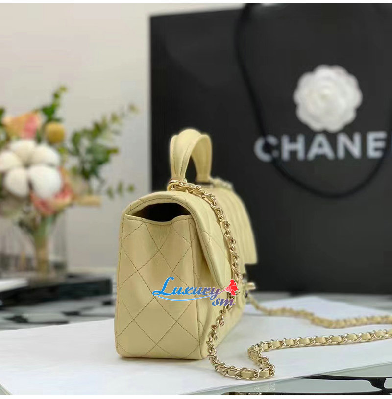 [스페셜오더]CHANEL-AS2431 샤넬 옐로우 램스킨 골드 핸들 장식 미니 플랩 백