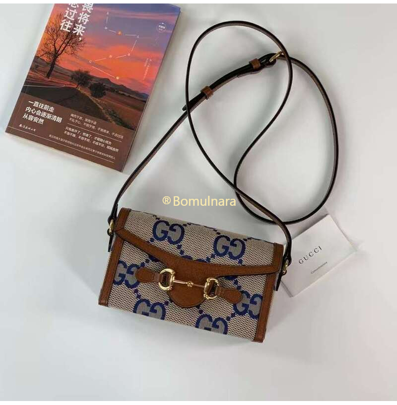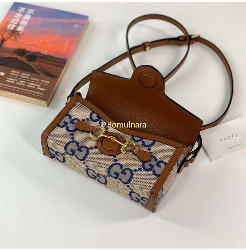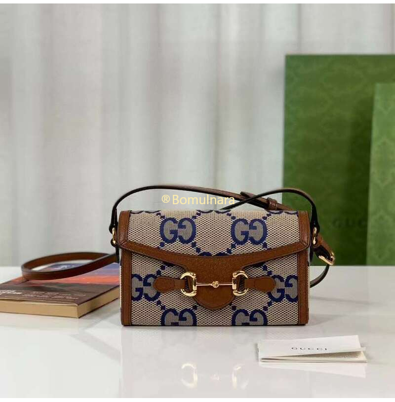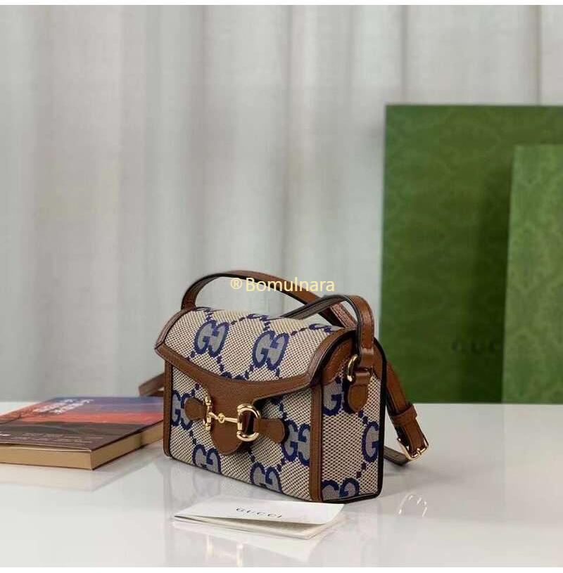 [스페셜오더]GUCCI-699296 2569 구찌 블루/베이지 맥시 GG 캔버스 홀스빗 1955 코리아 익스클루시브 미니백