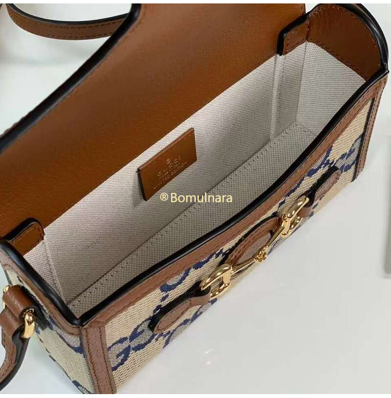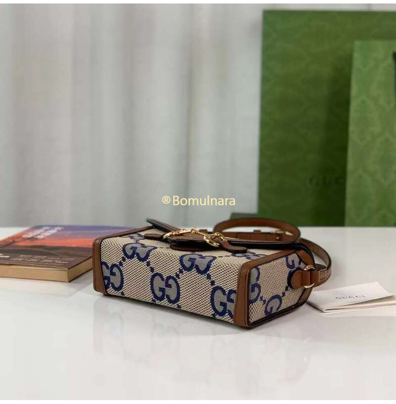[스페셜오더]GUCCI-703848 2569 구찌 블루/베이지 맥시 GG 홀스빗 1955 코리아 익스클루시브 미니 탑 핸들백