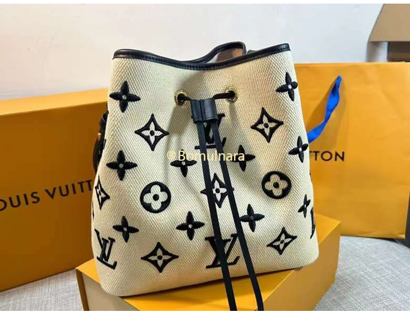 [스페셜오더]LOUIS VUITTON-M23080 루이비통 베이지/느와르 모노그램 로터스 면 네오노에 버킷 백 MM