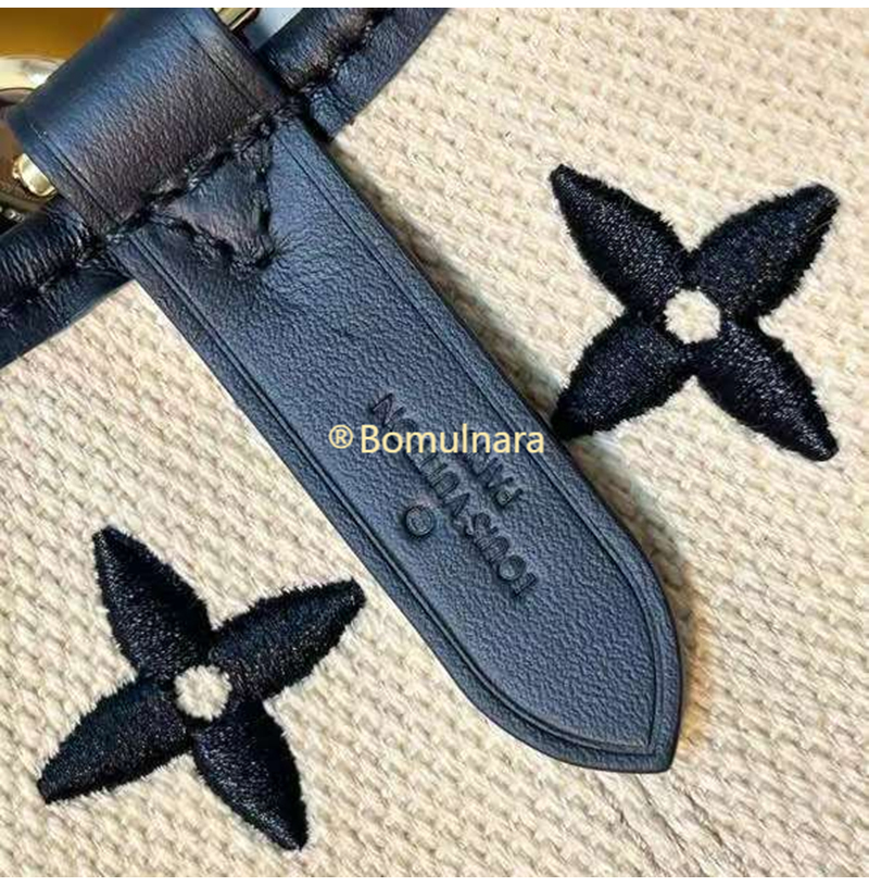 라피아를 닮은 부드러운 면소재에 수놓은 모노그램