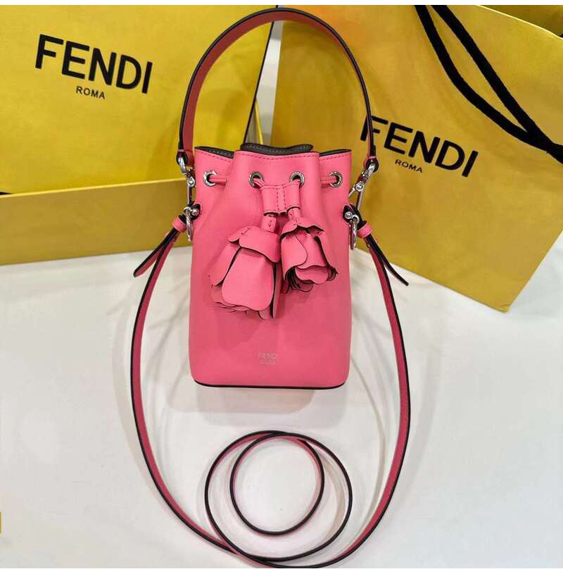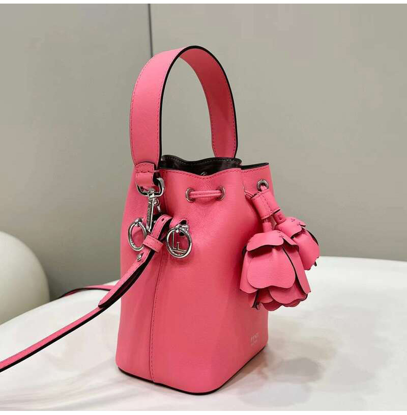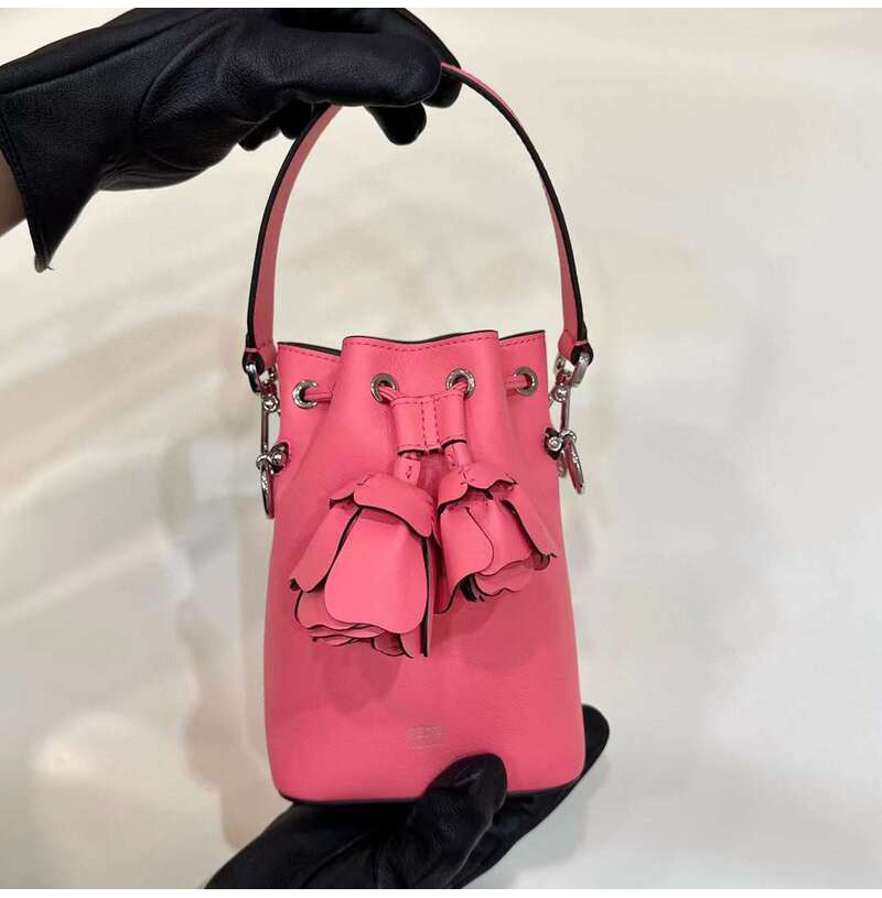 [스페셜오더]FENDI-8BS010 펜디 3D 로즈 핑크 로즈 장식 몬트레조 스몰 버킷 백
